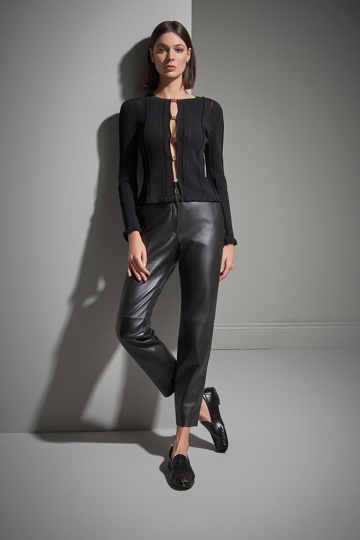 Agraf Detaylı Ajurlu Siyah Triko Hırka