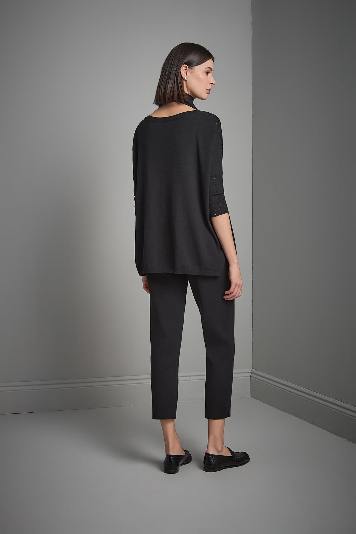Atkı Detaylı Taş Baskılı Siyah Triko Bluz