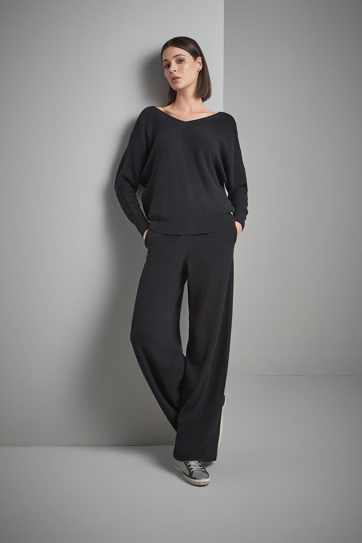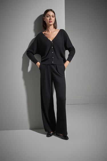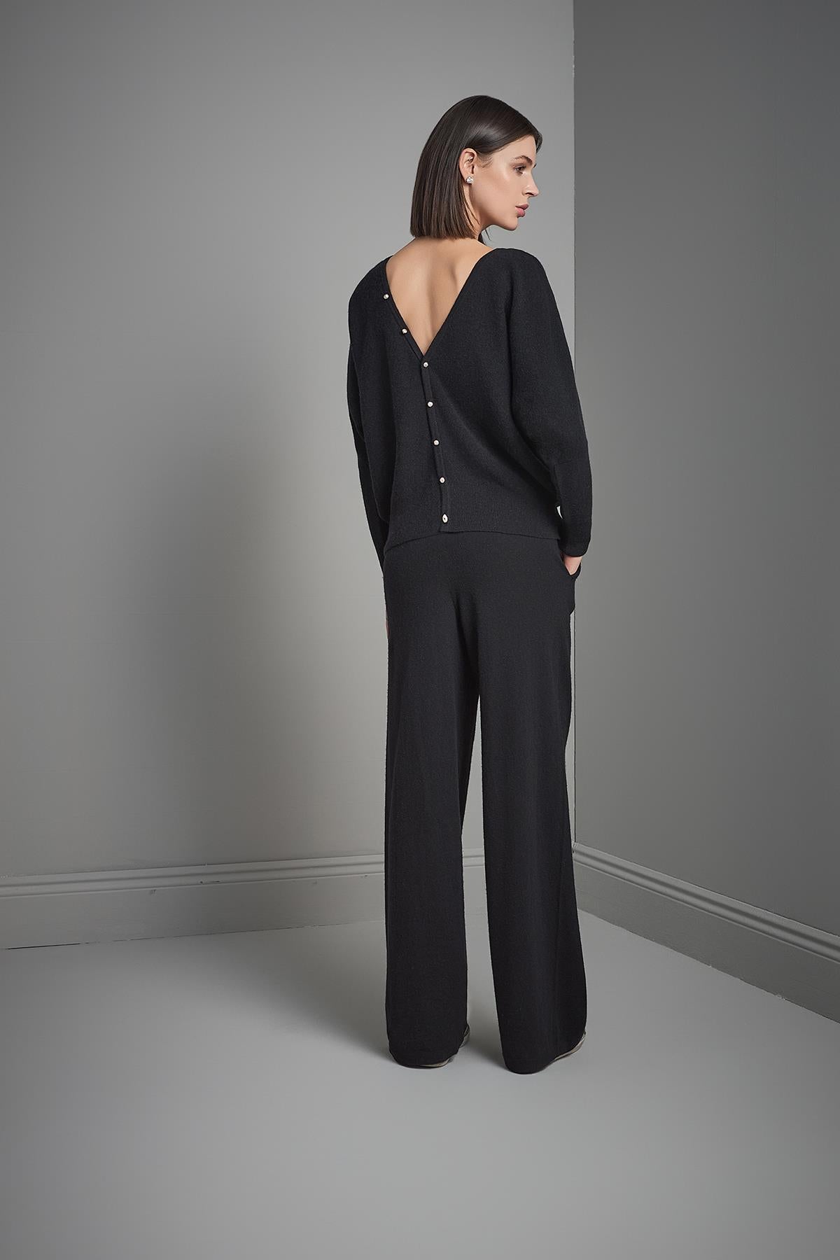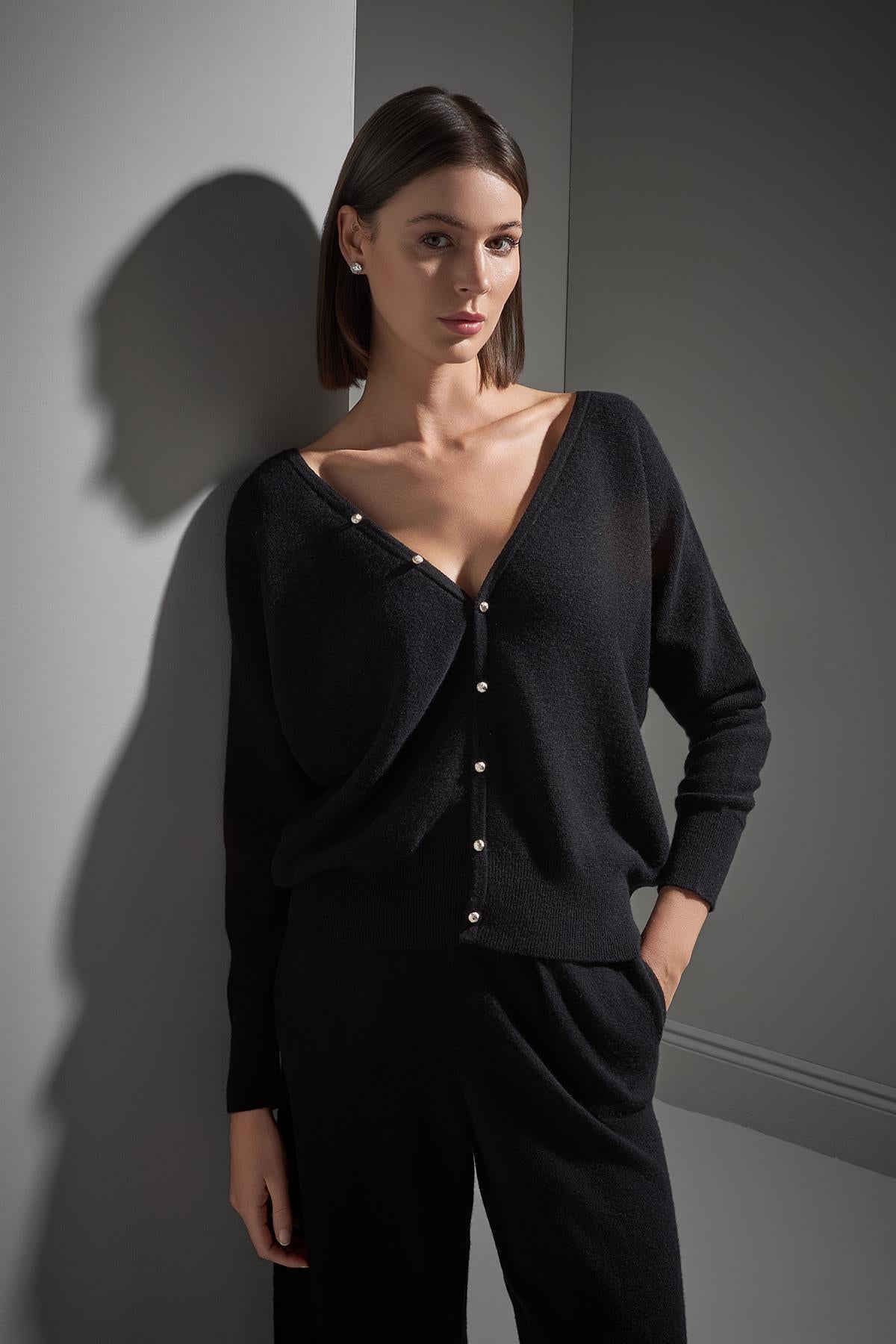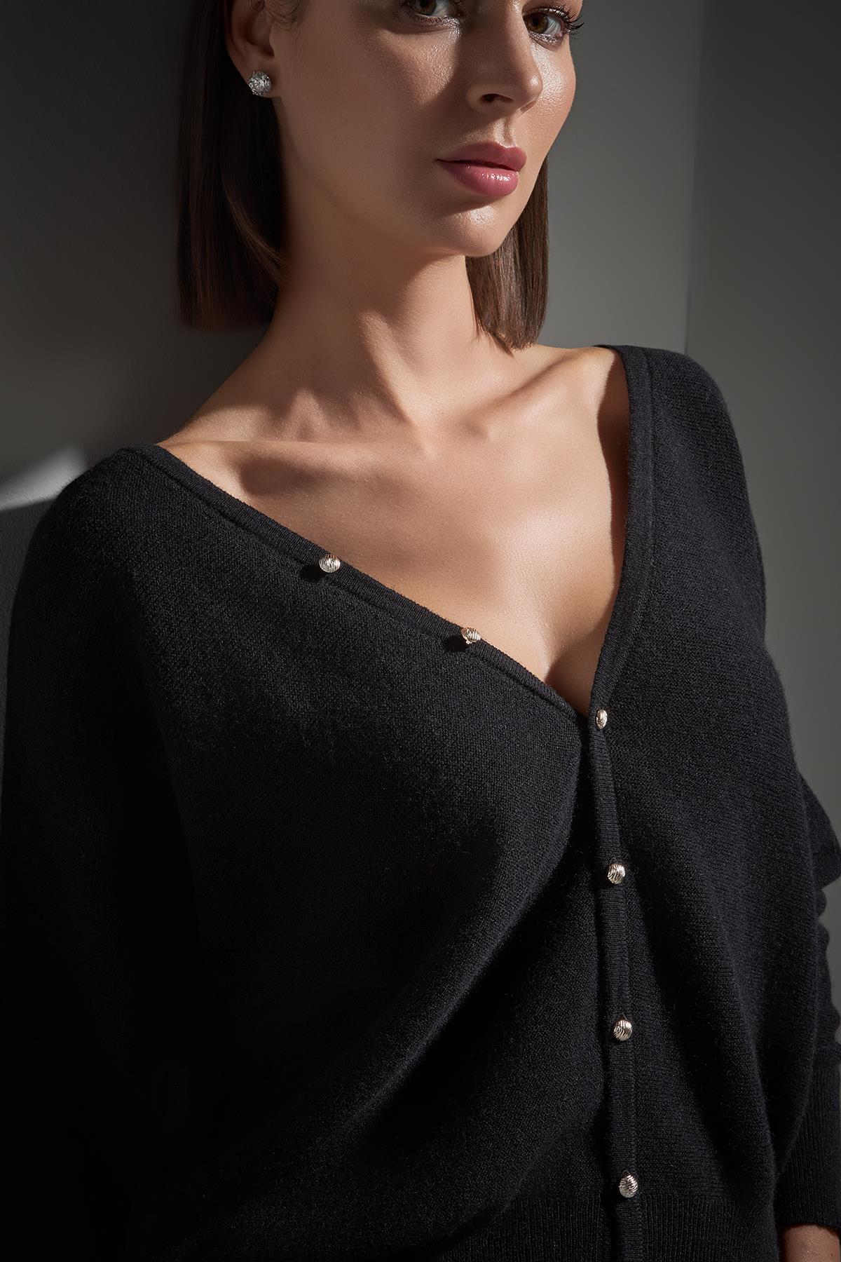 Çıtçıtlı Yarasa Kol Siyah Triko Kazak