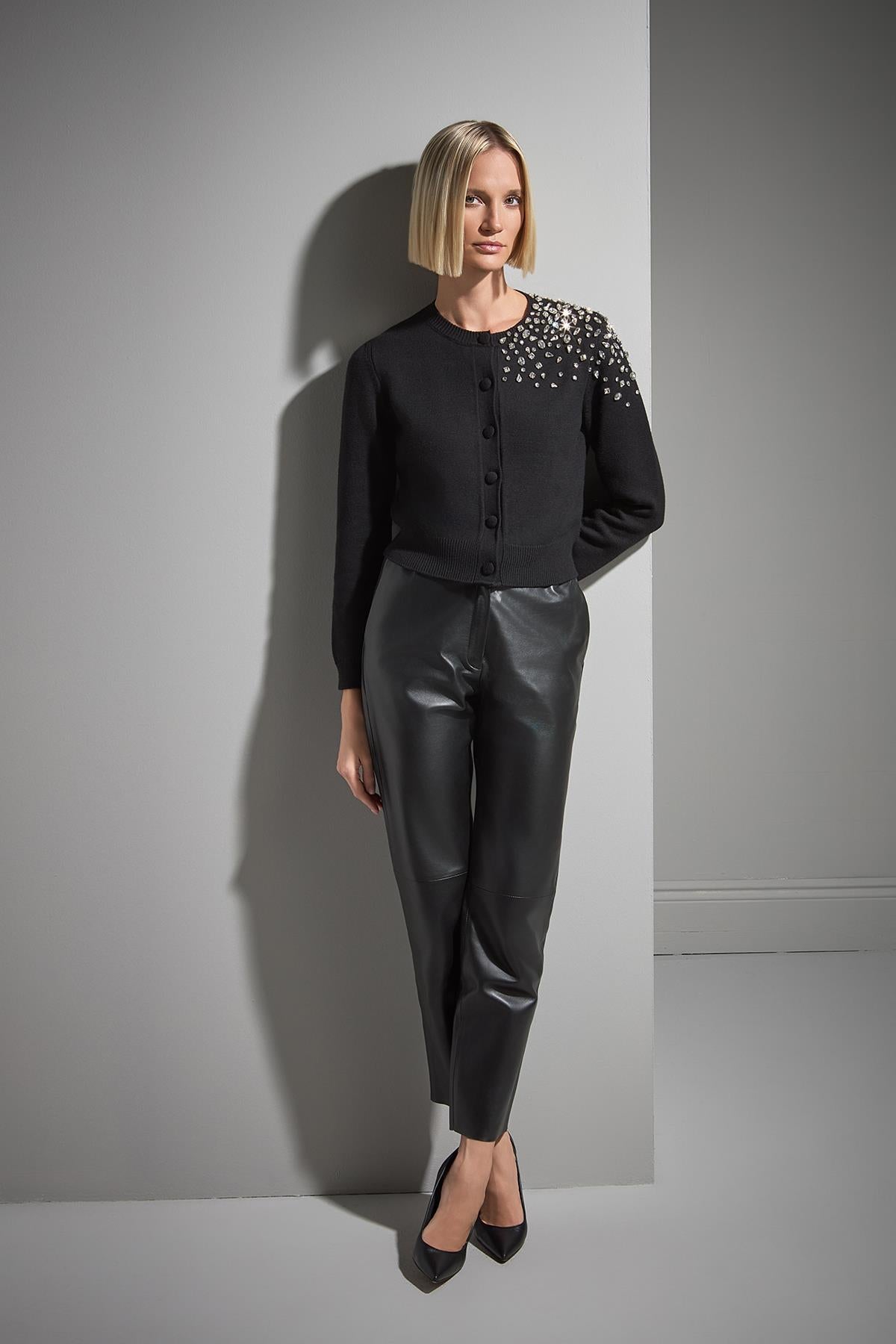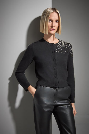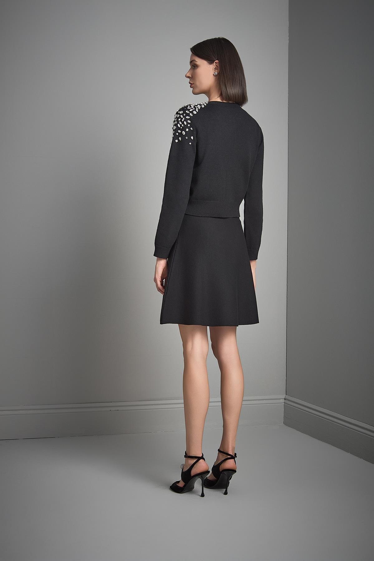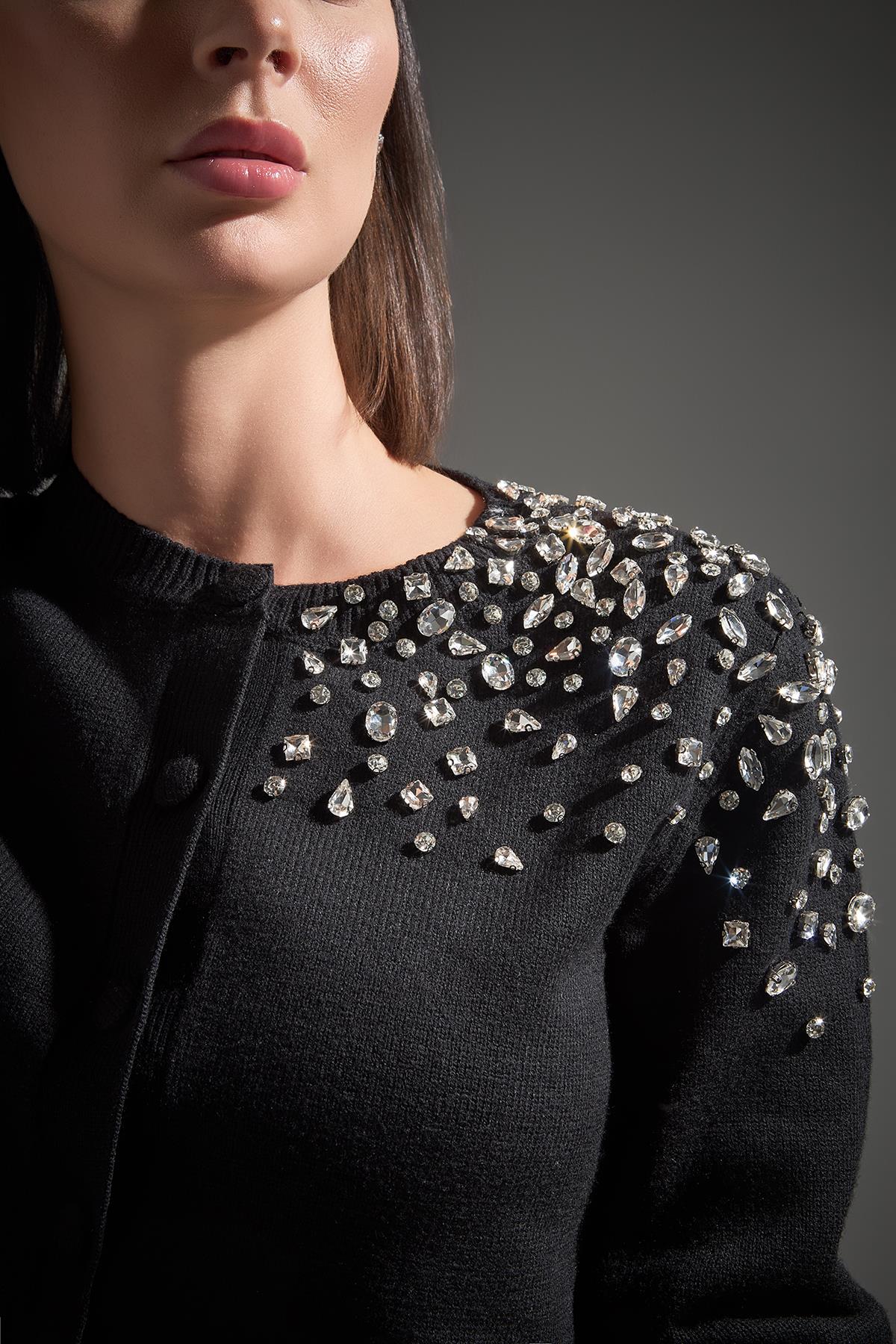 El İşi Taş İşlemeli Siyah Triko Hırka