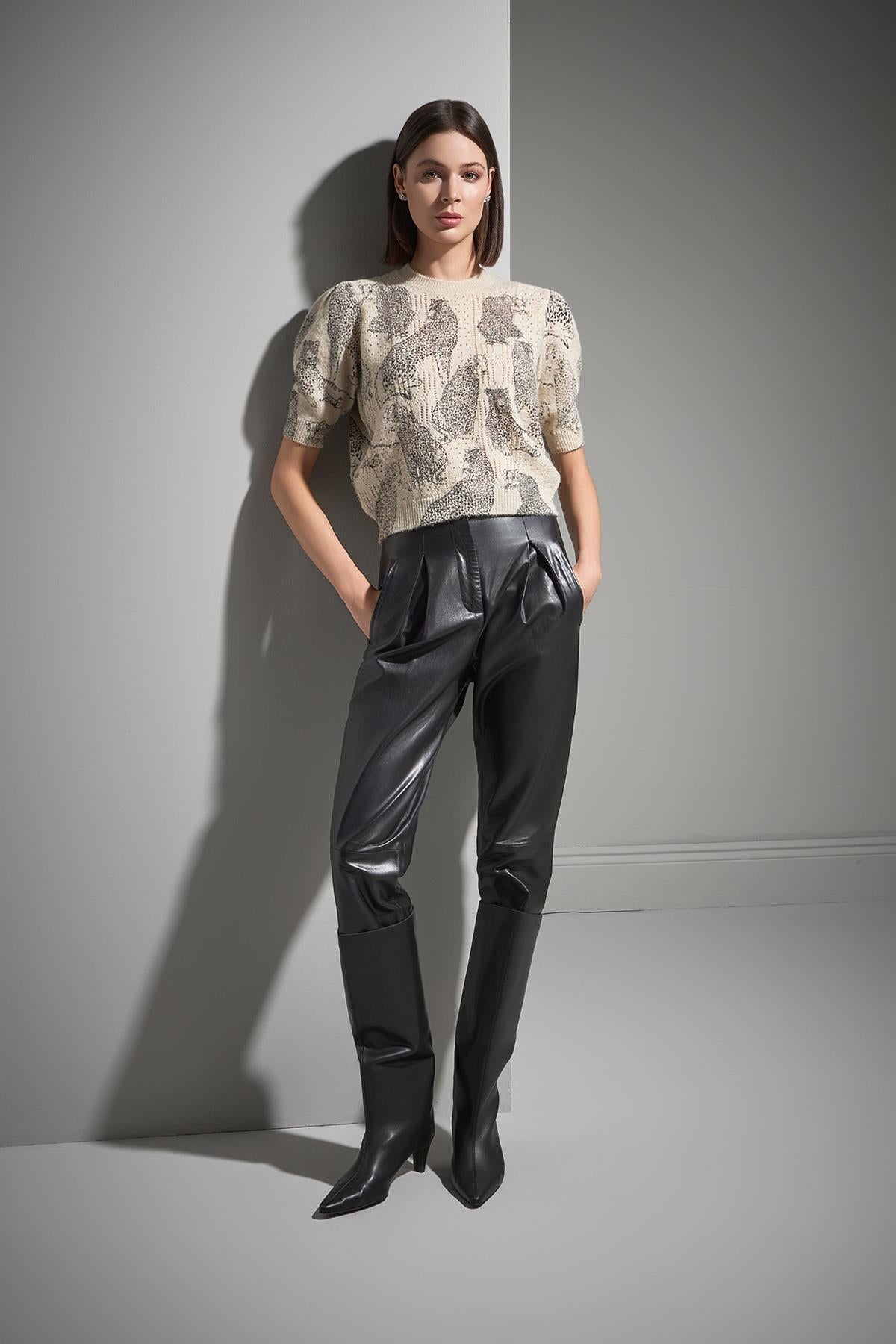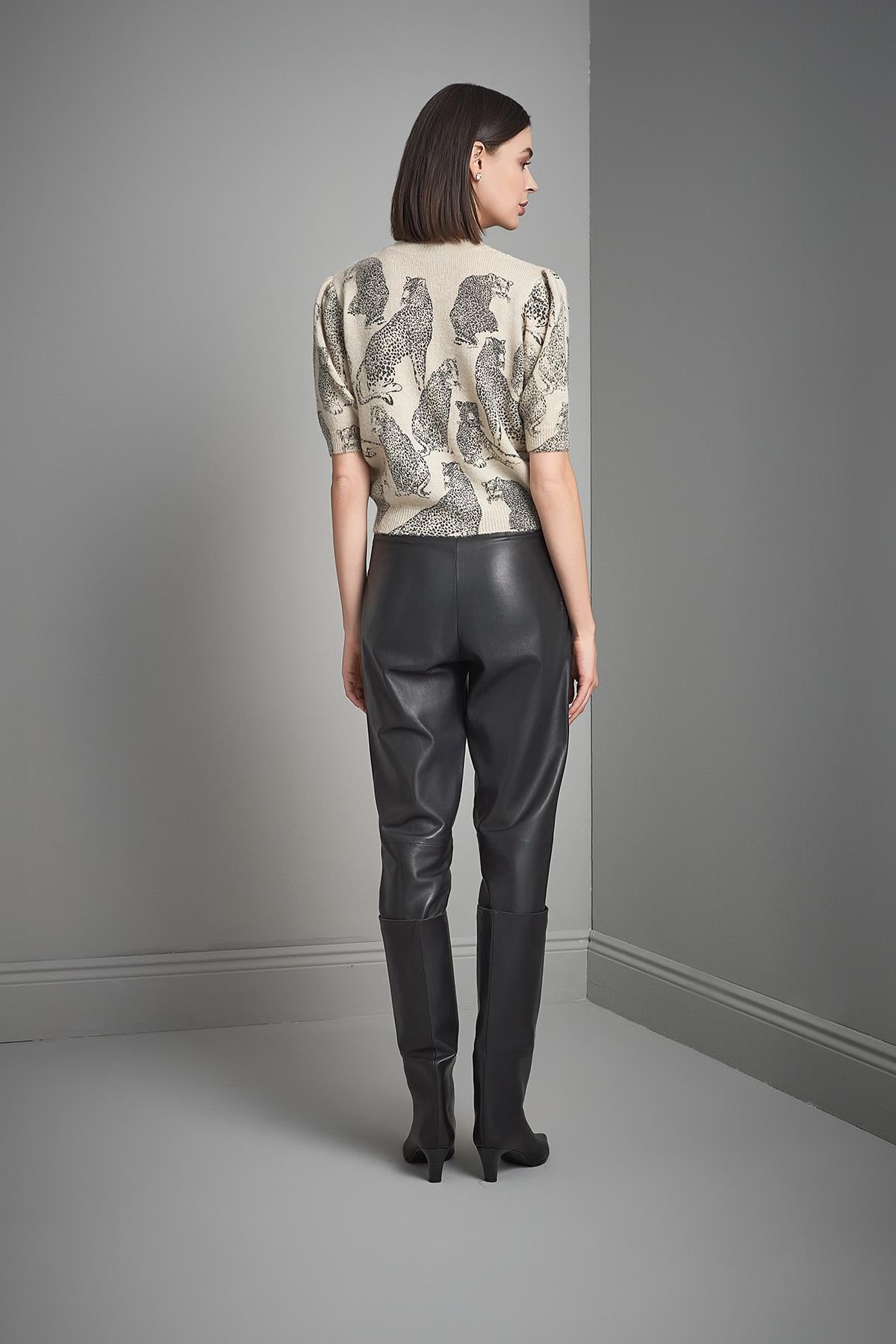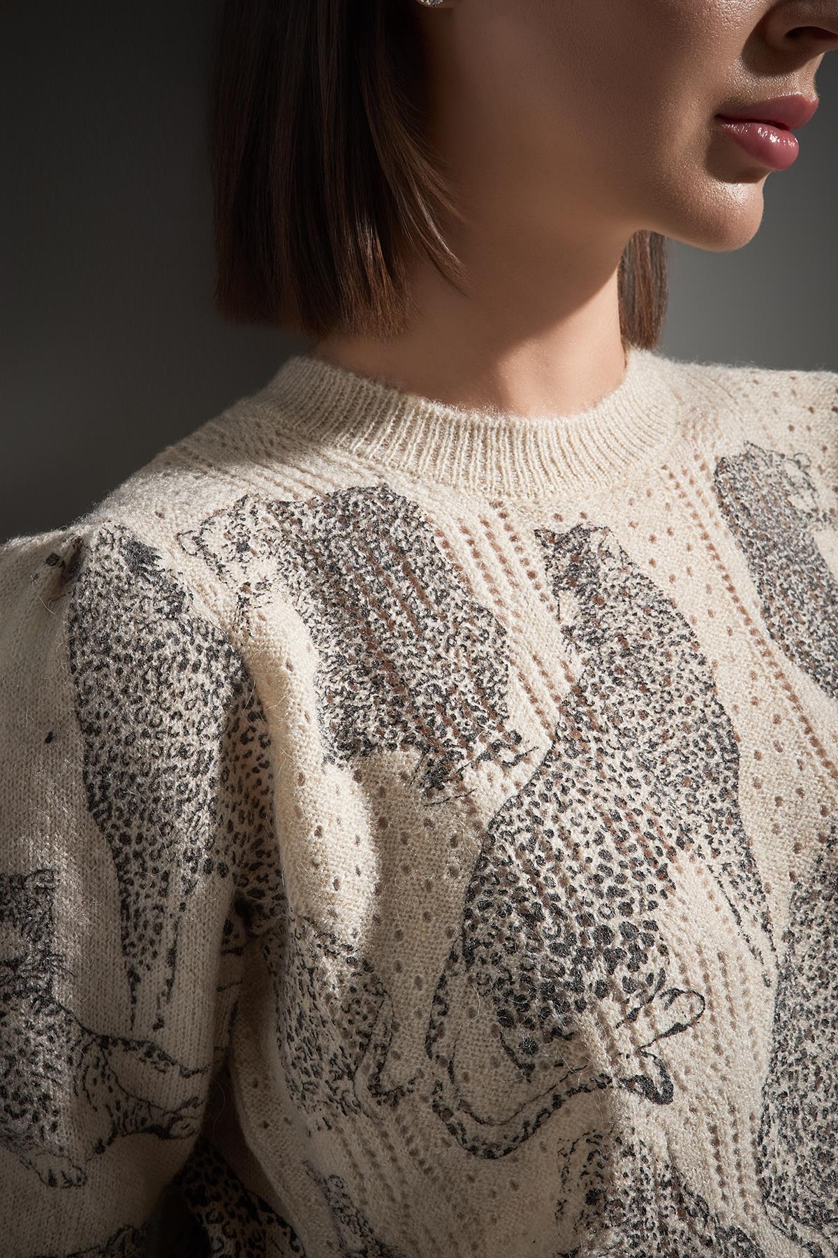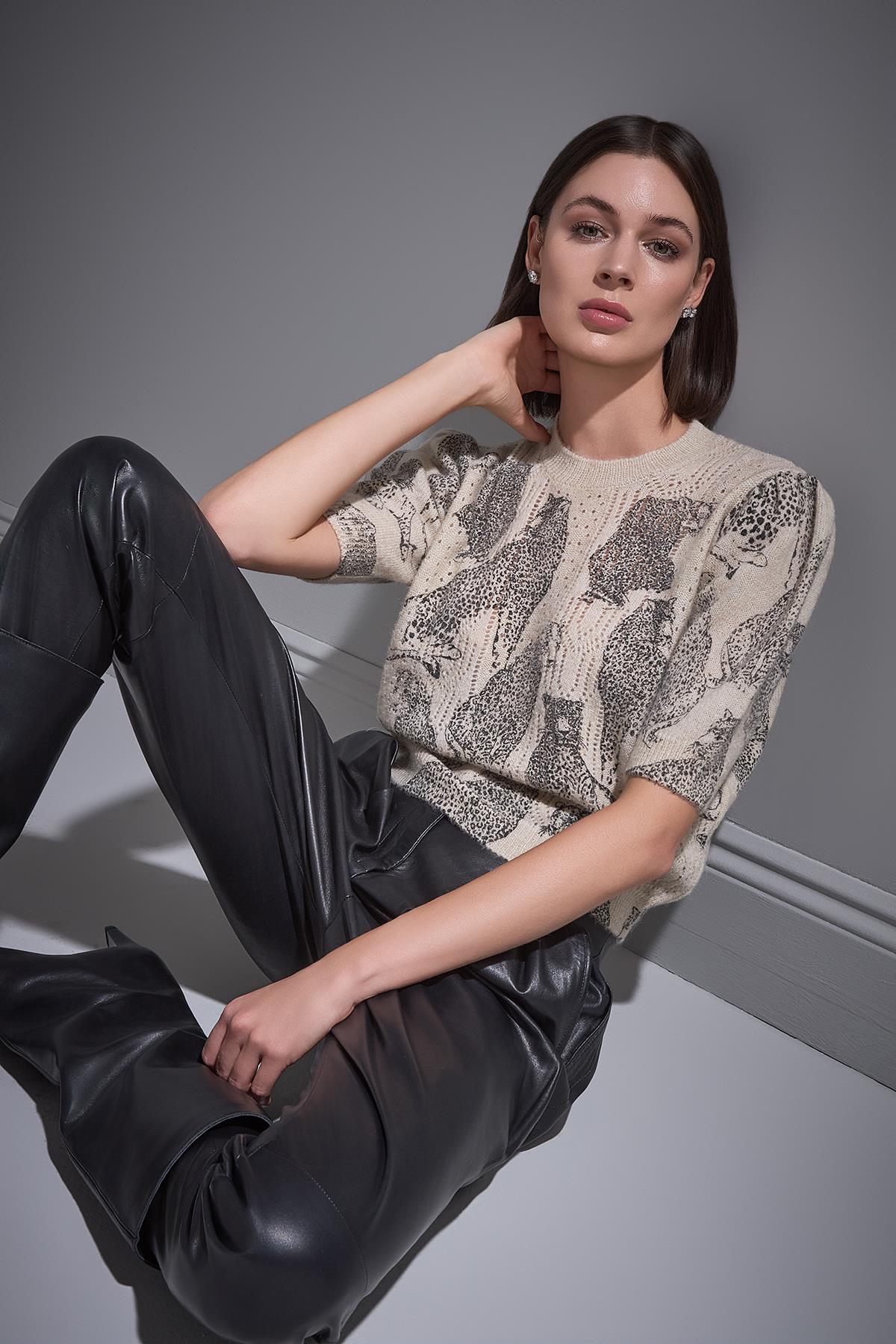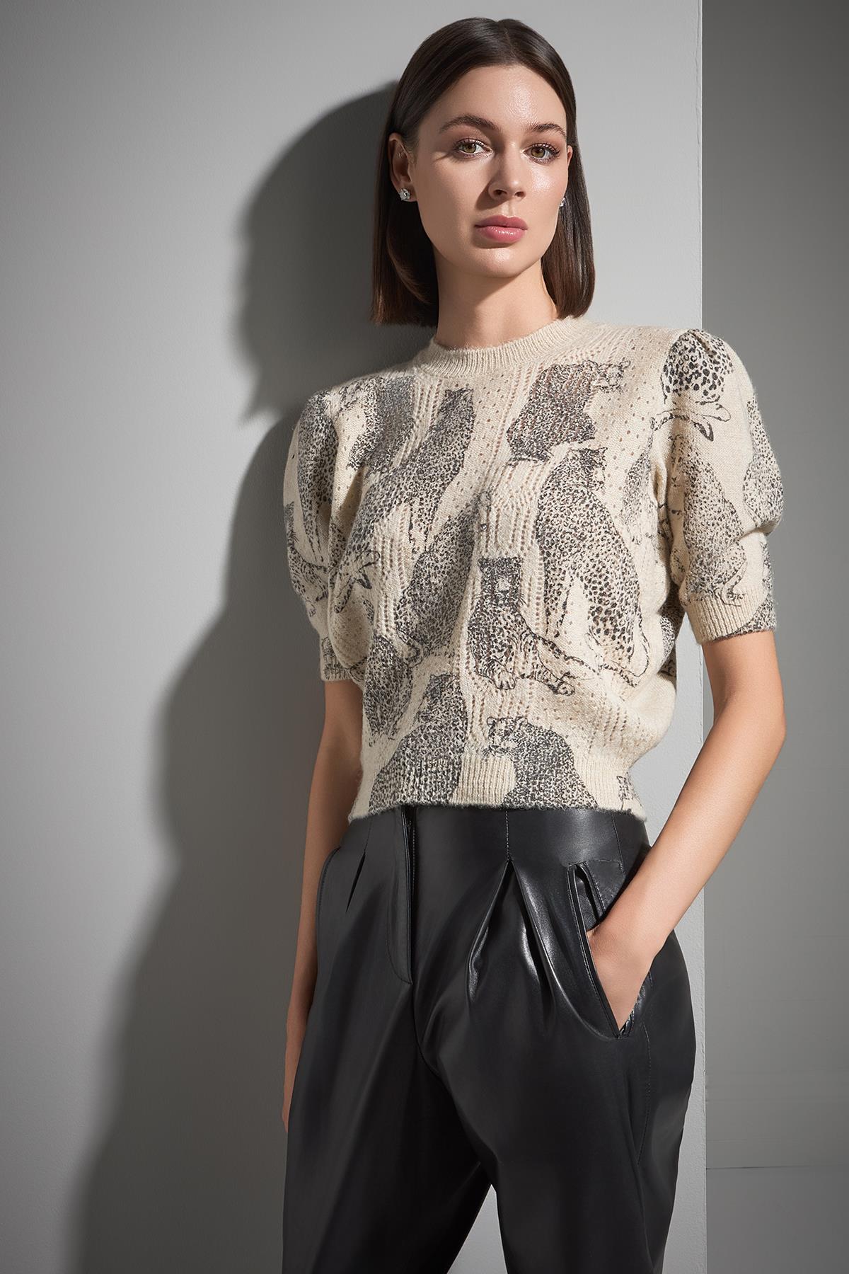 Kaplan Baskılı Kısa Kollu Multi Triko Kazak