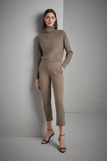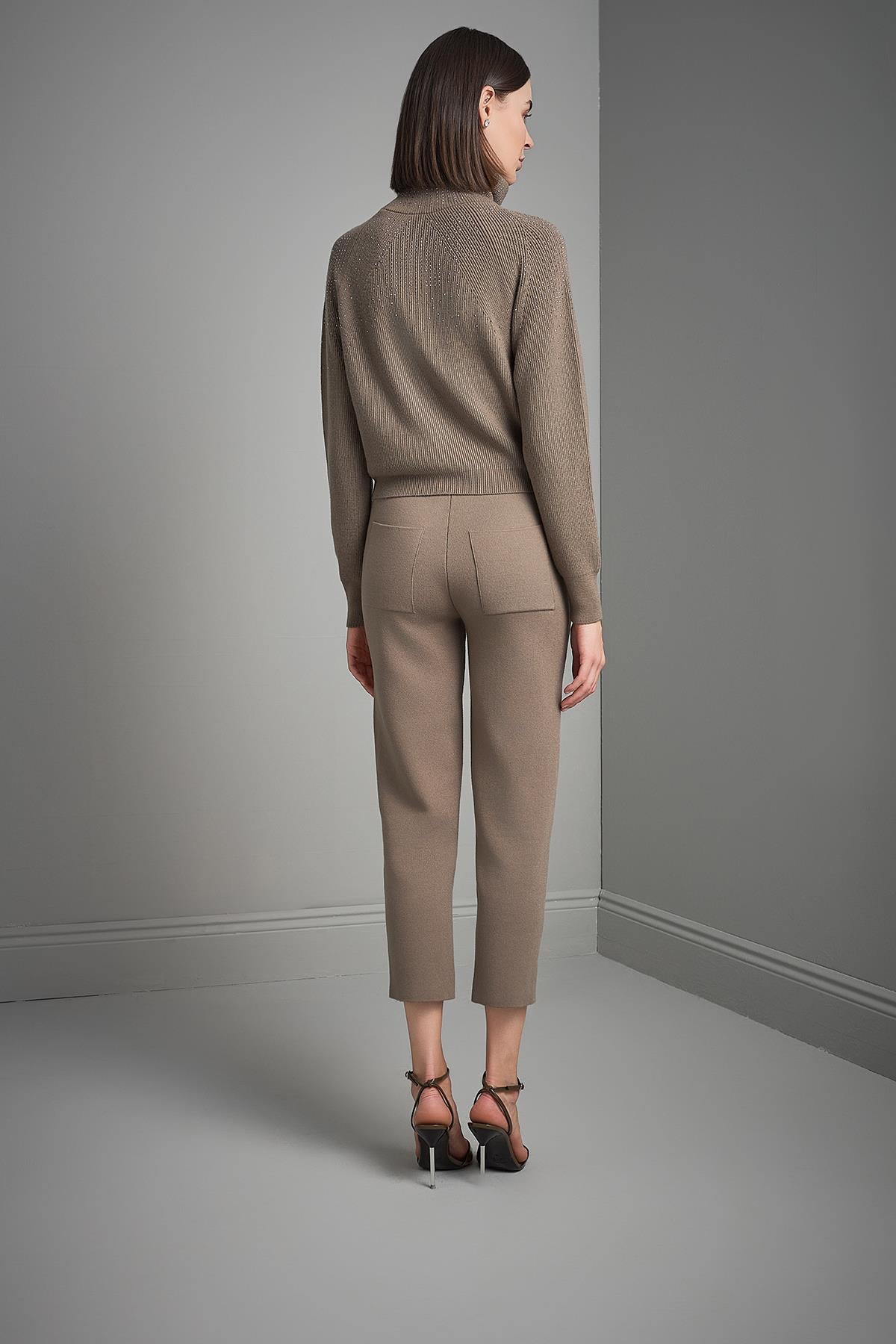 Taş Baskılı Boğazlı Kahverengi Triko Kazak