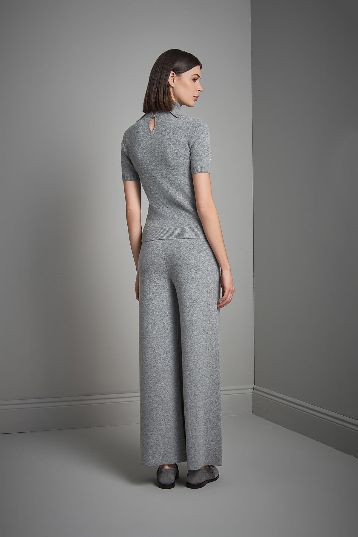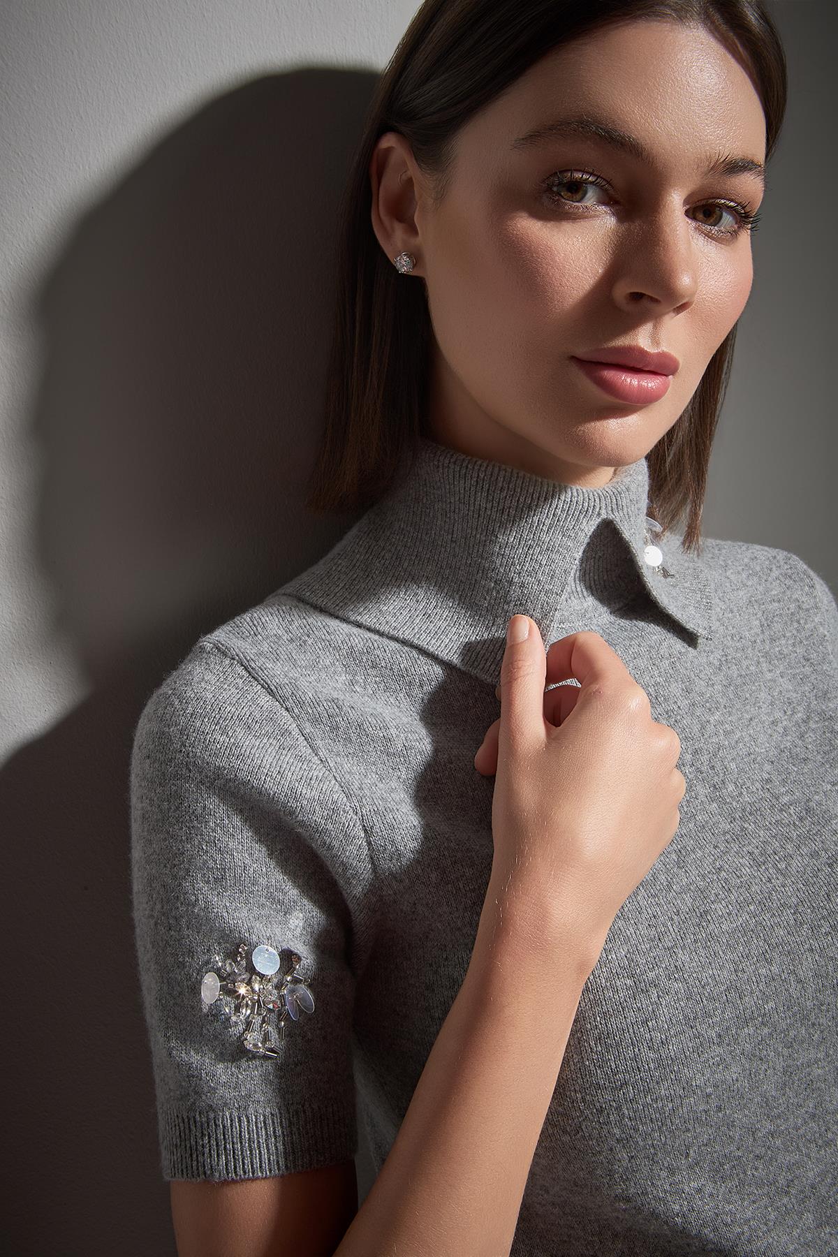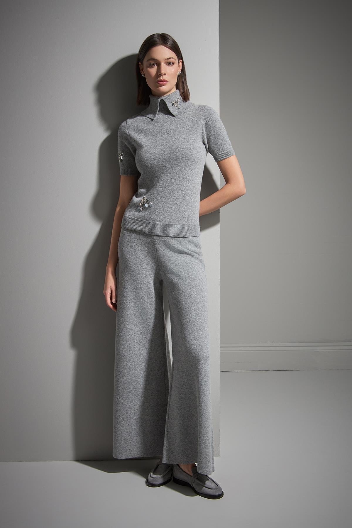 El İşi Pul ve Taş İşlemeli Gri Triko Bluz