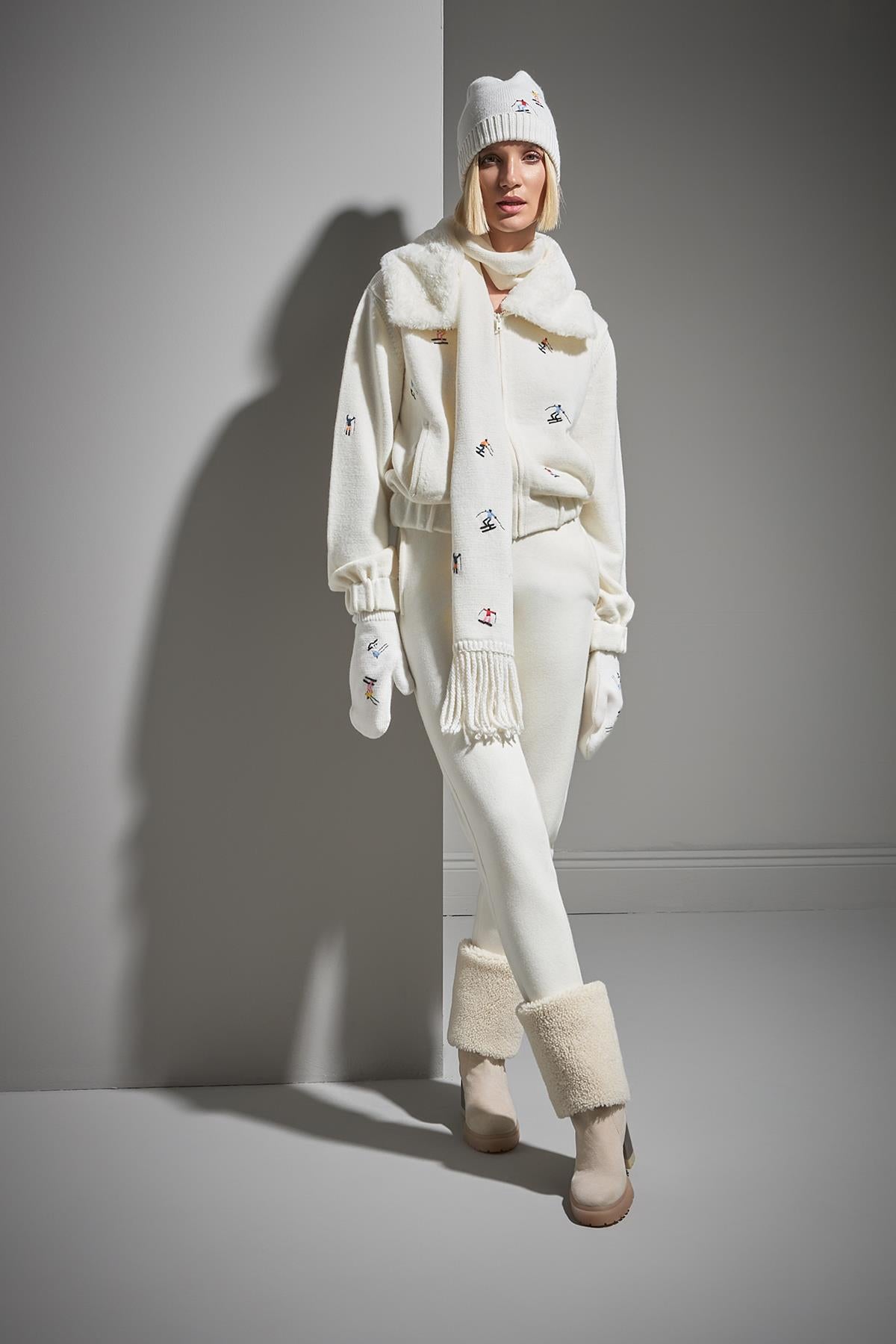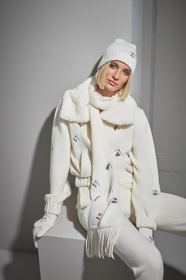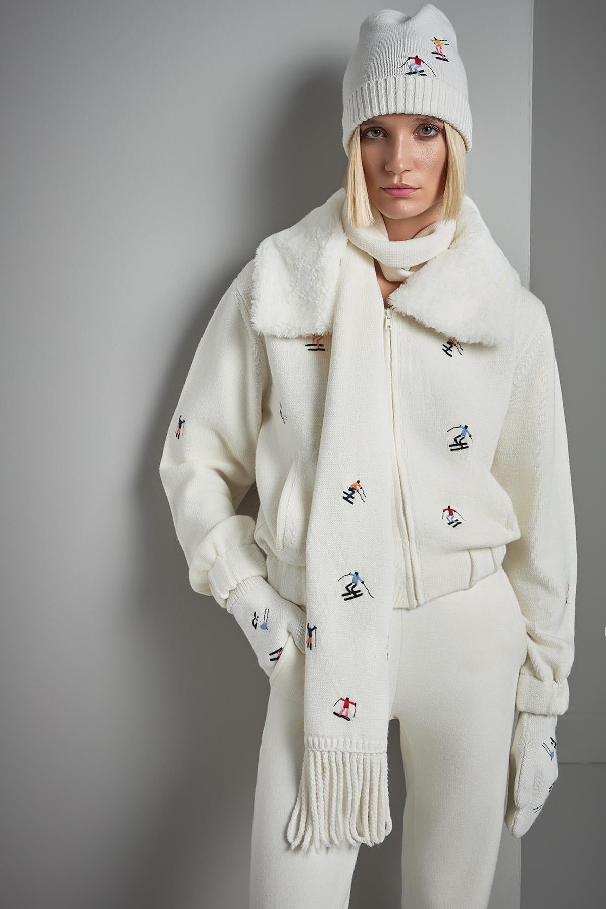 Nakış Figürlü Püsküllü Ekru Triko Atkı