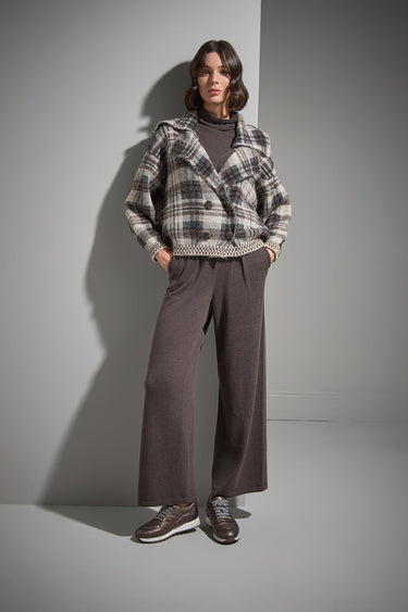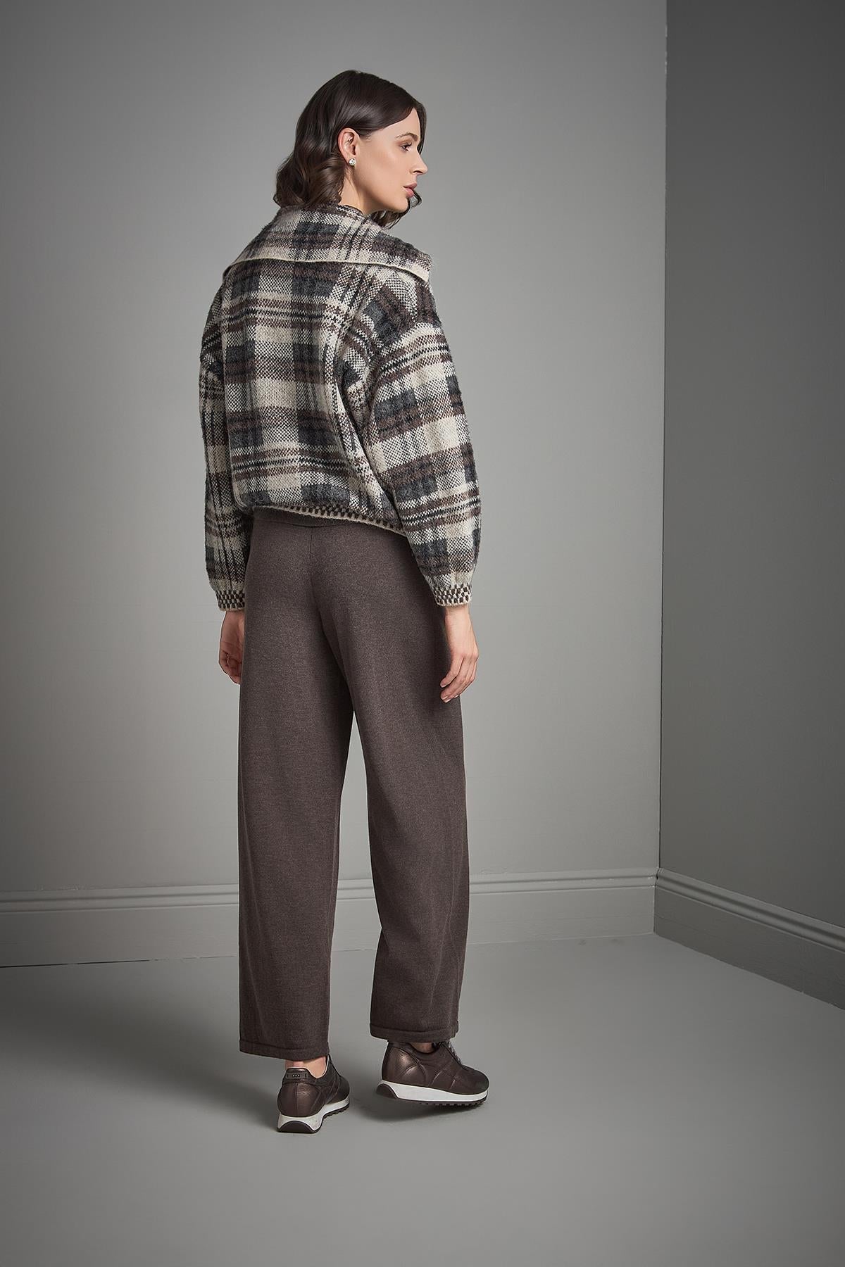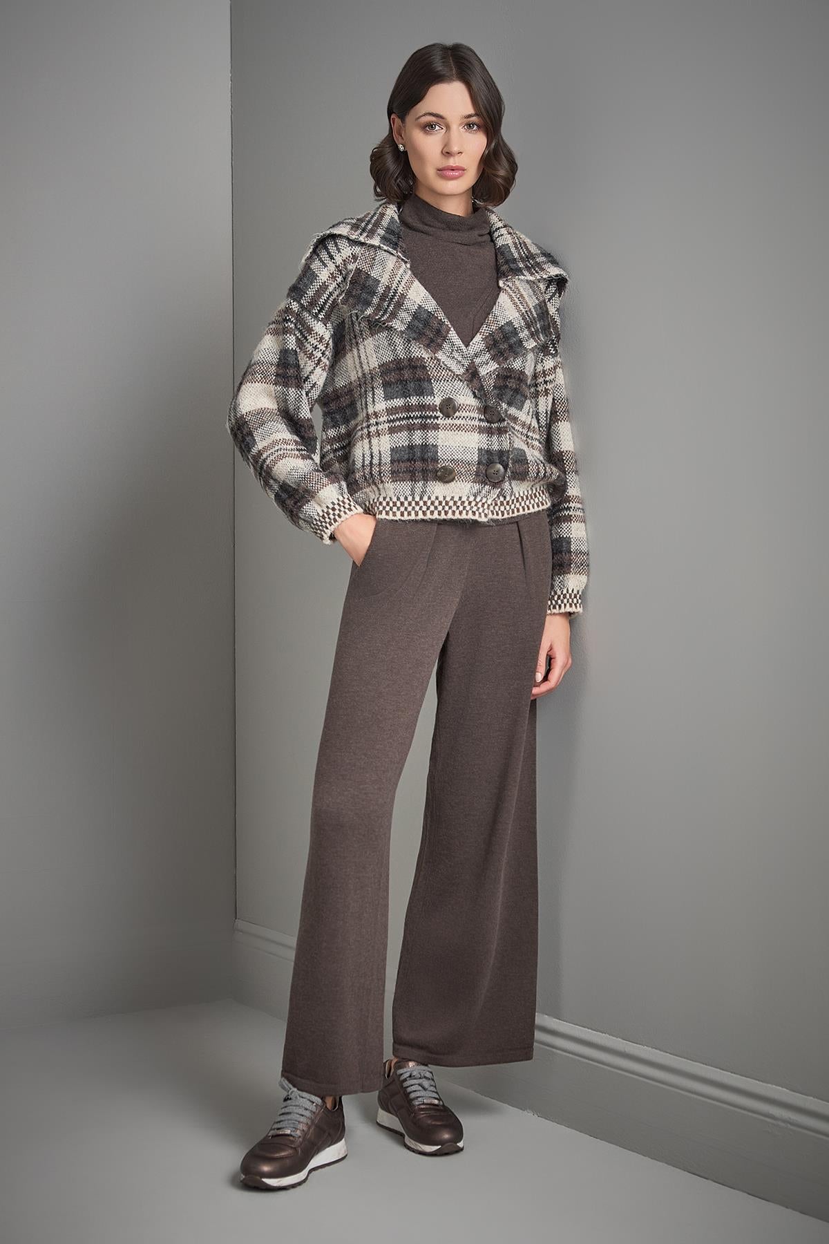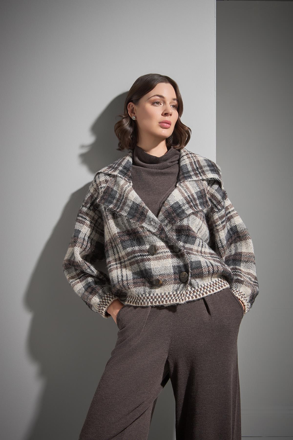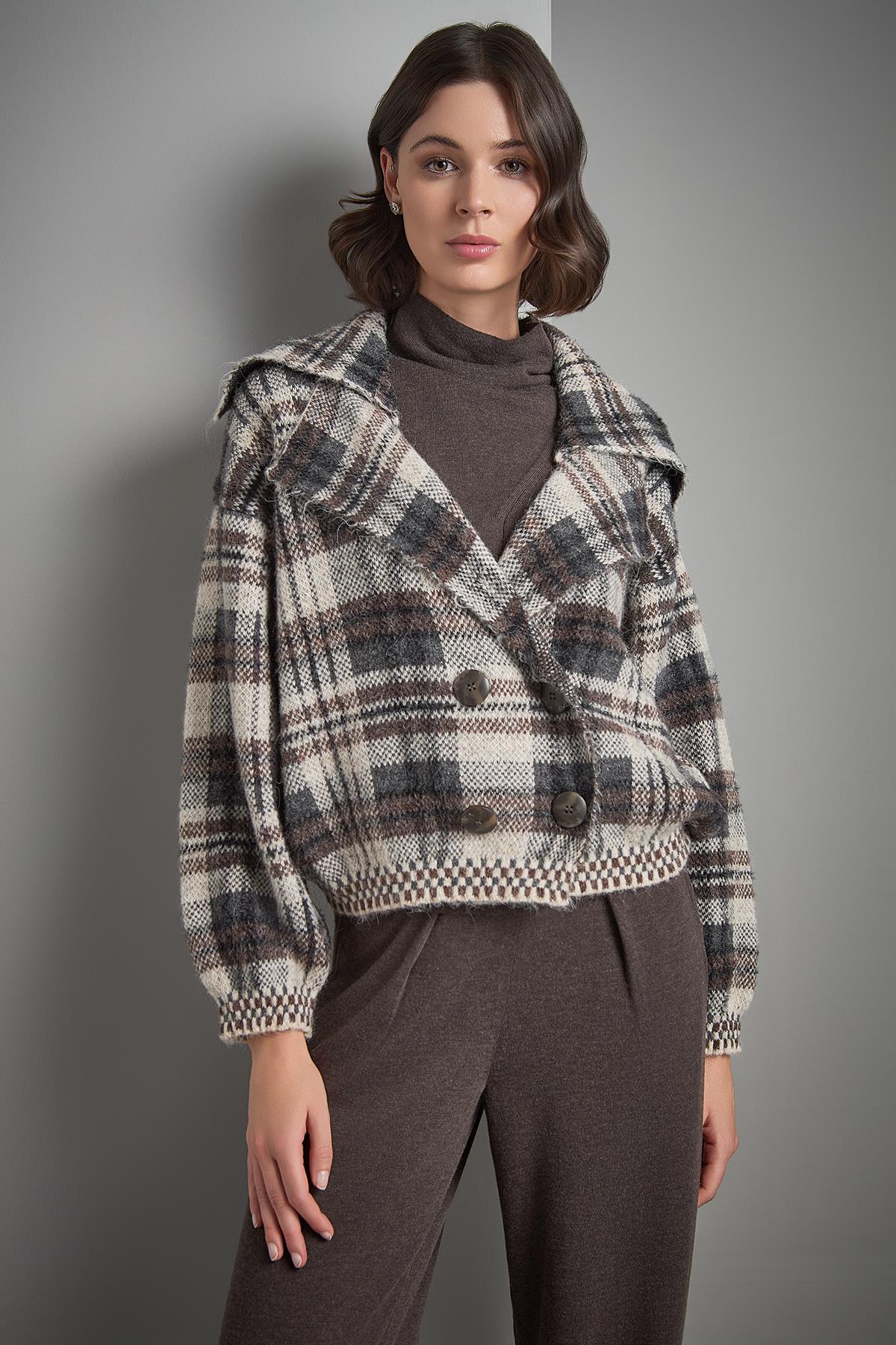 Ekose Desenli Düğmeli Multi Triko Kaban