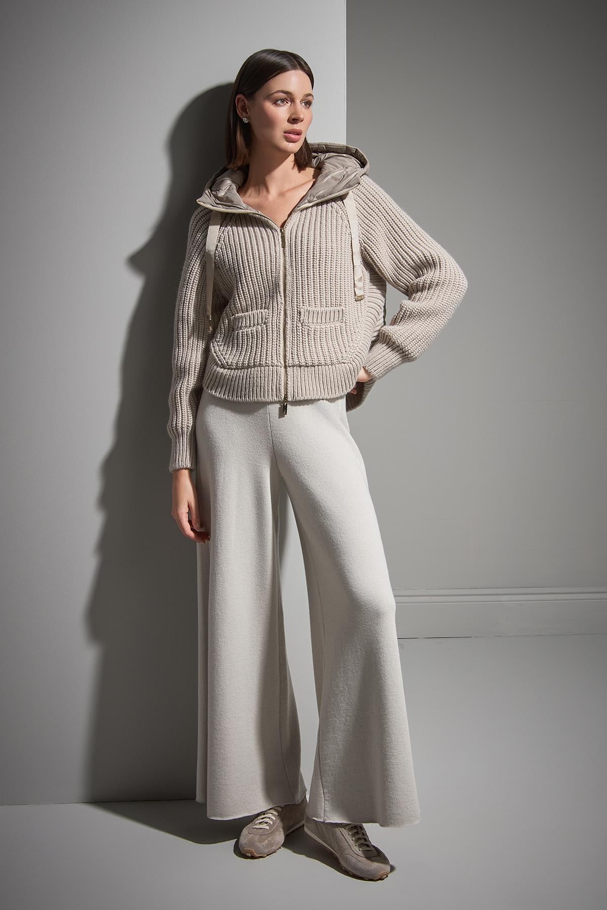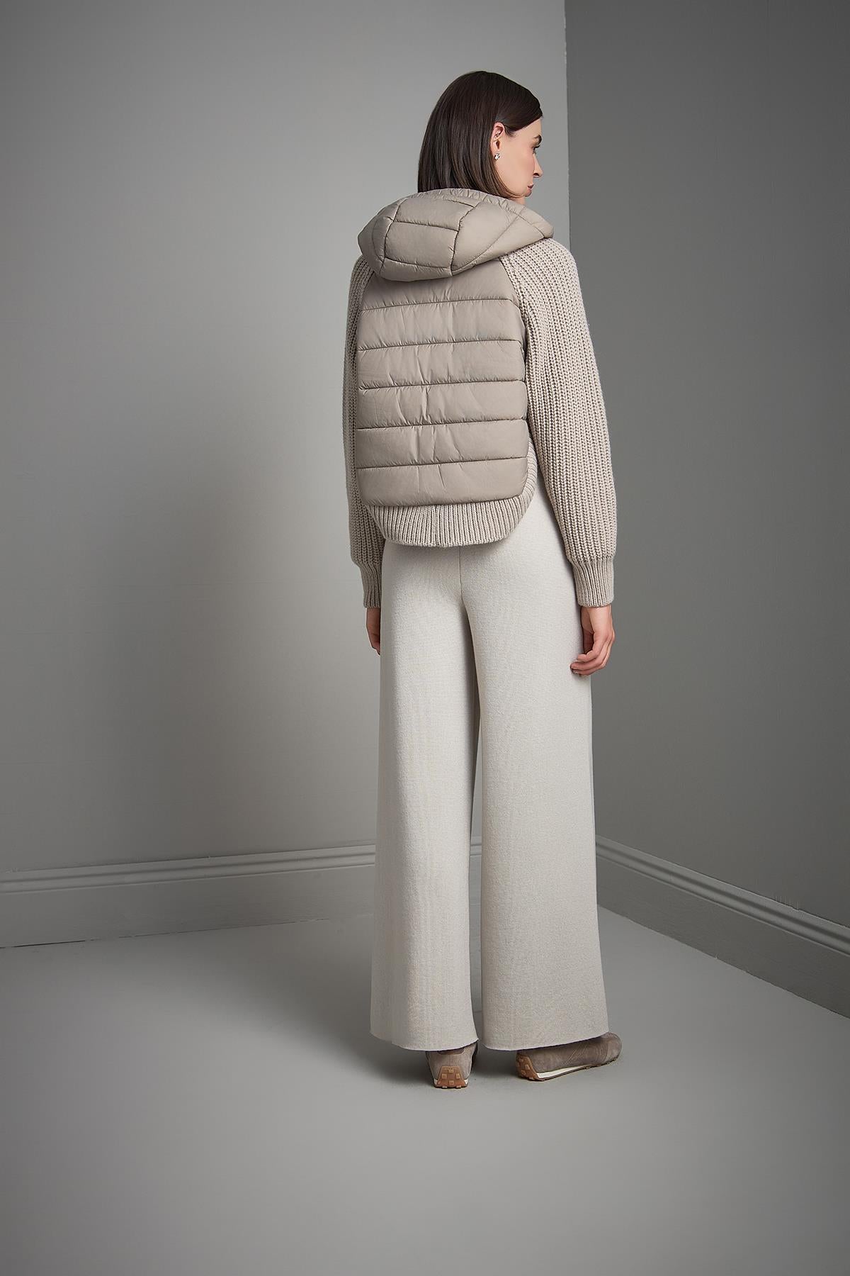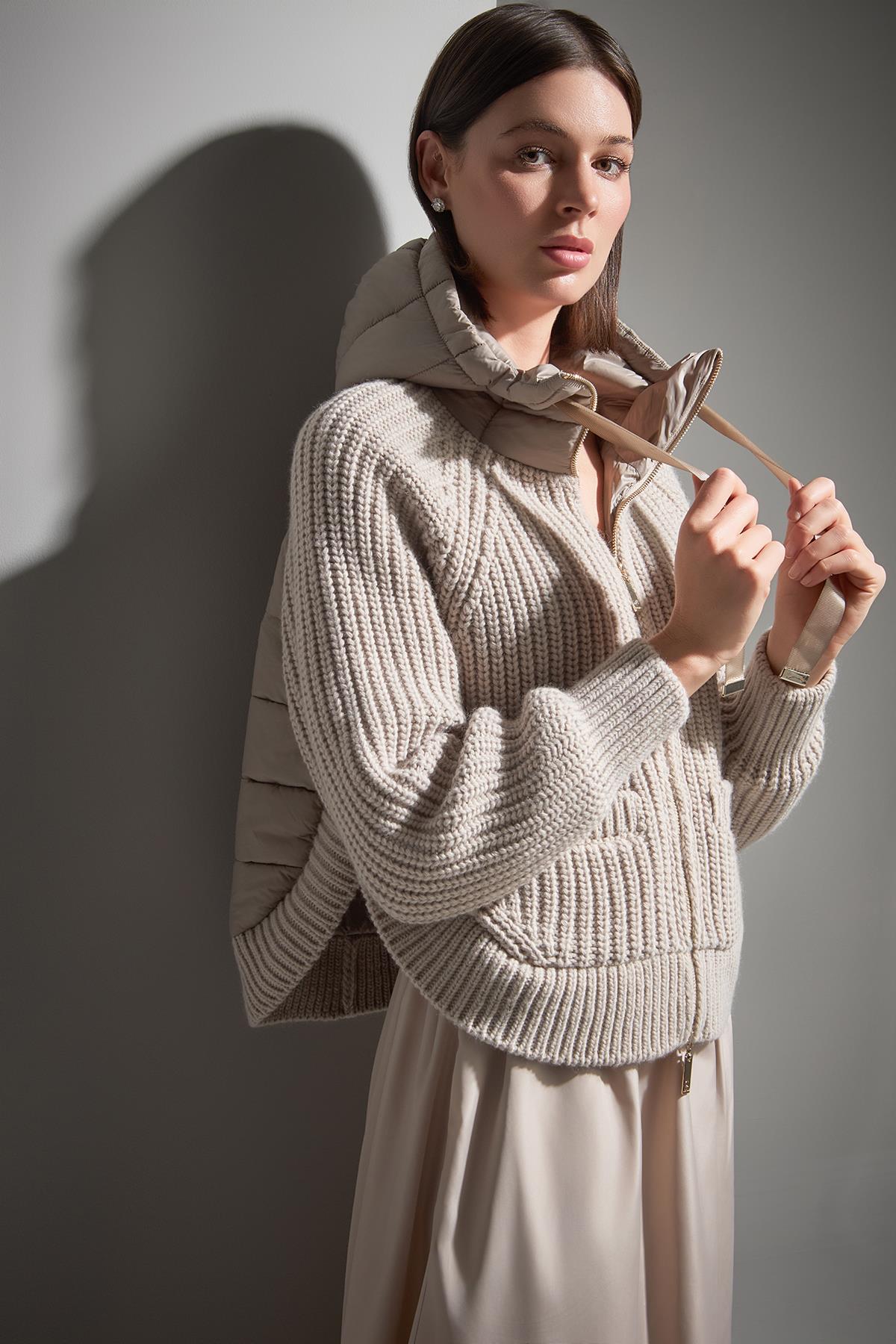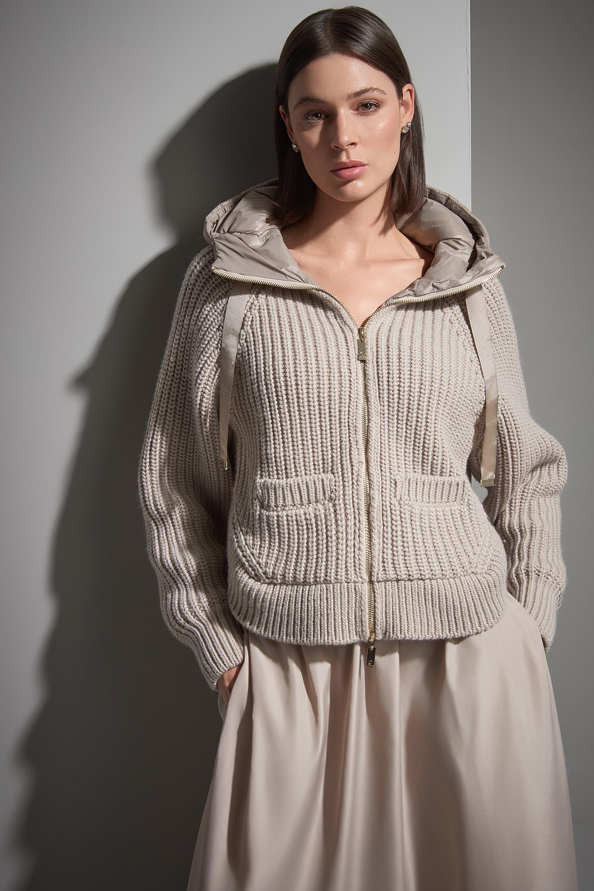 Kapüşonlu Kapitoneli Bej Triko Ceket