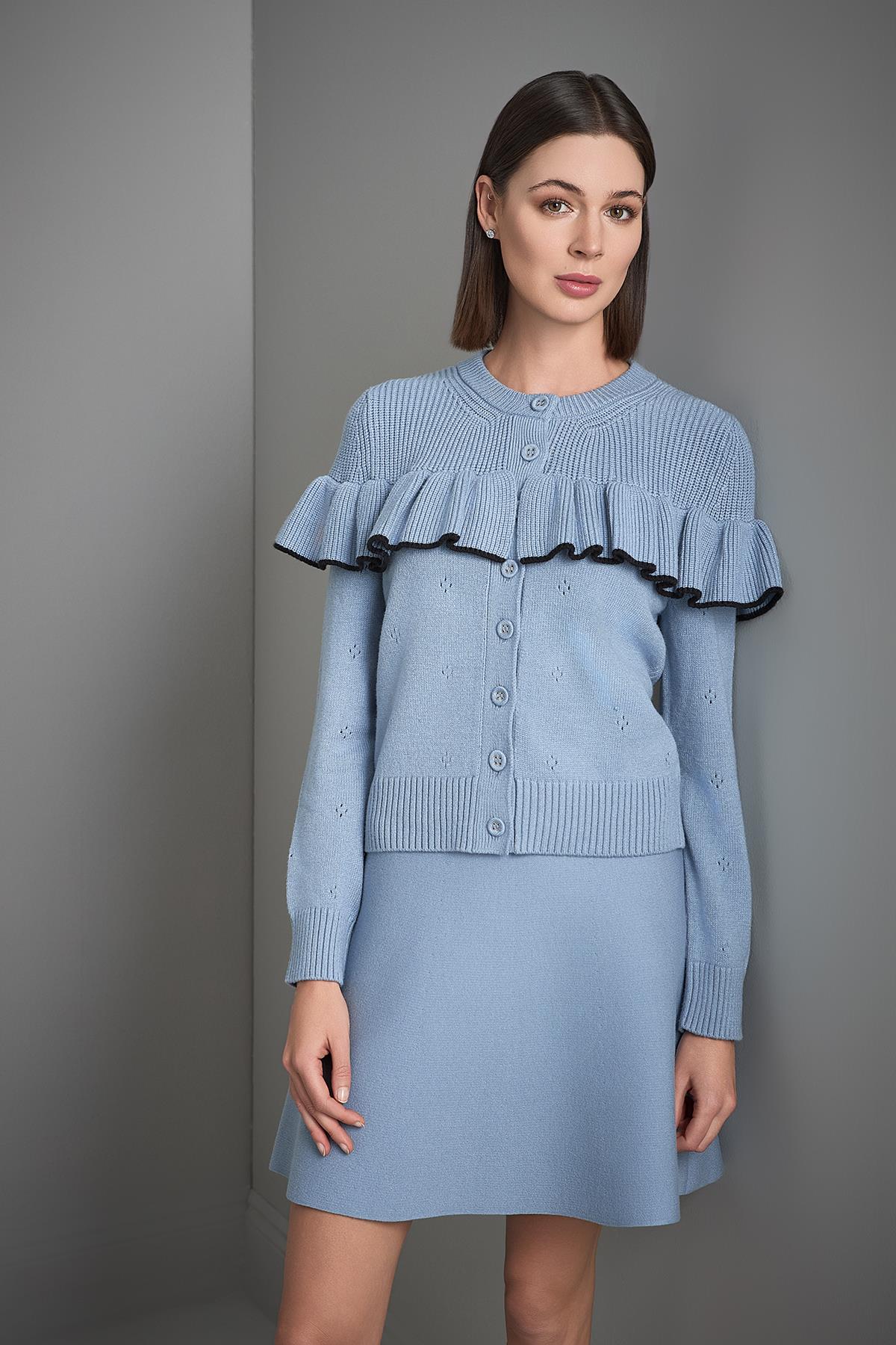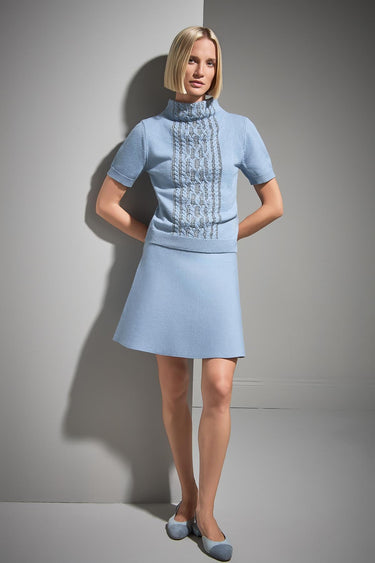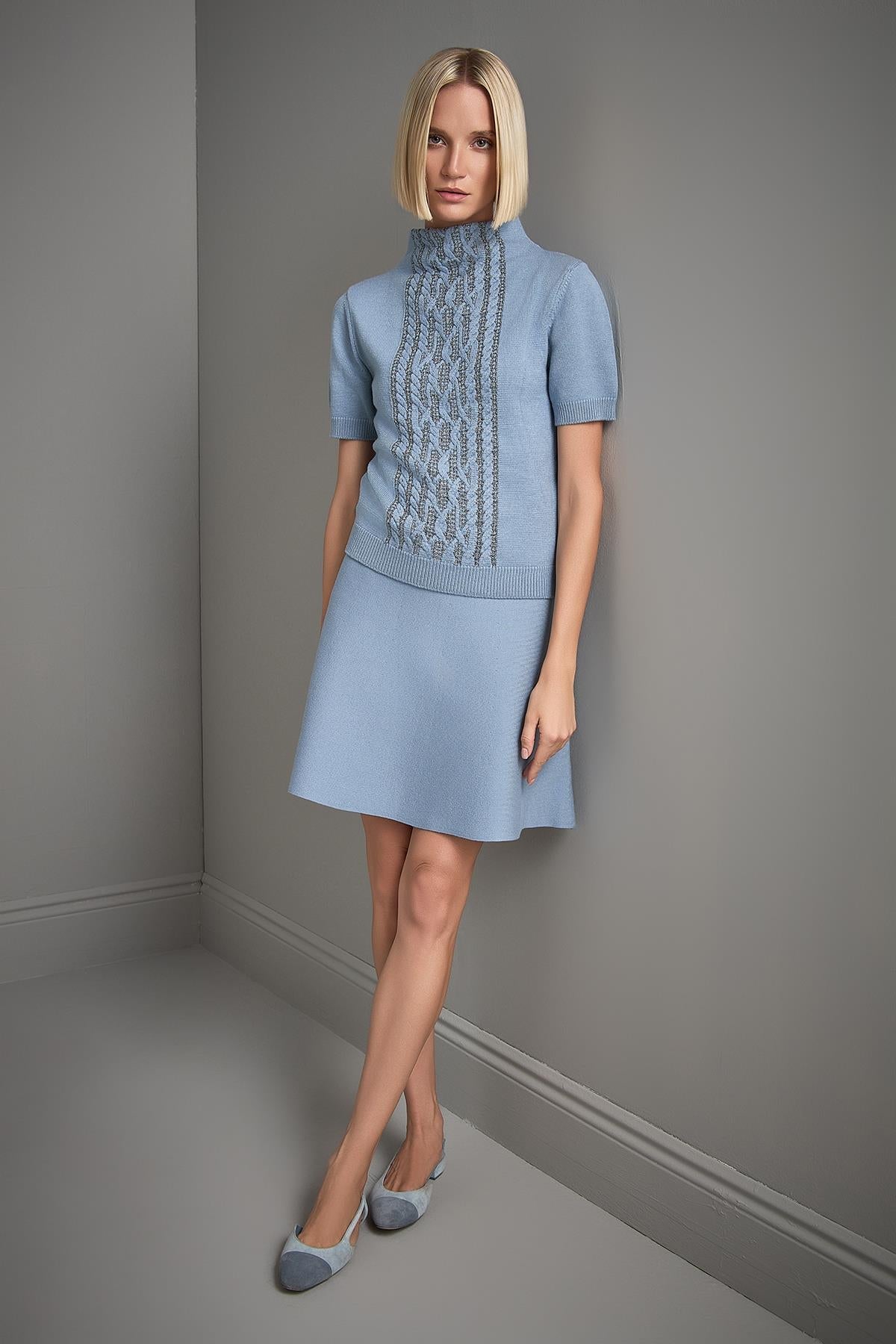Kloş Mini Mavi Triko Etek