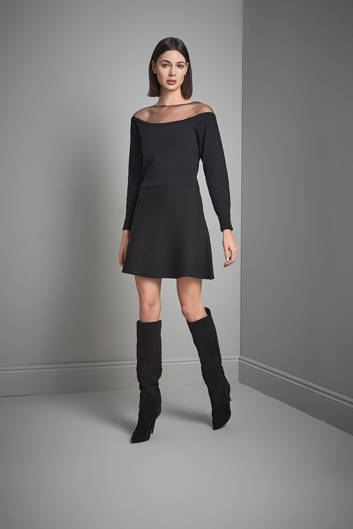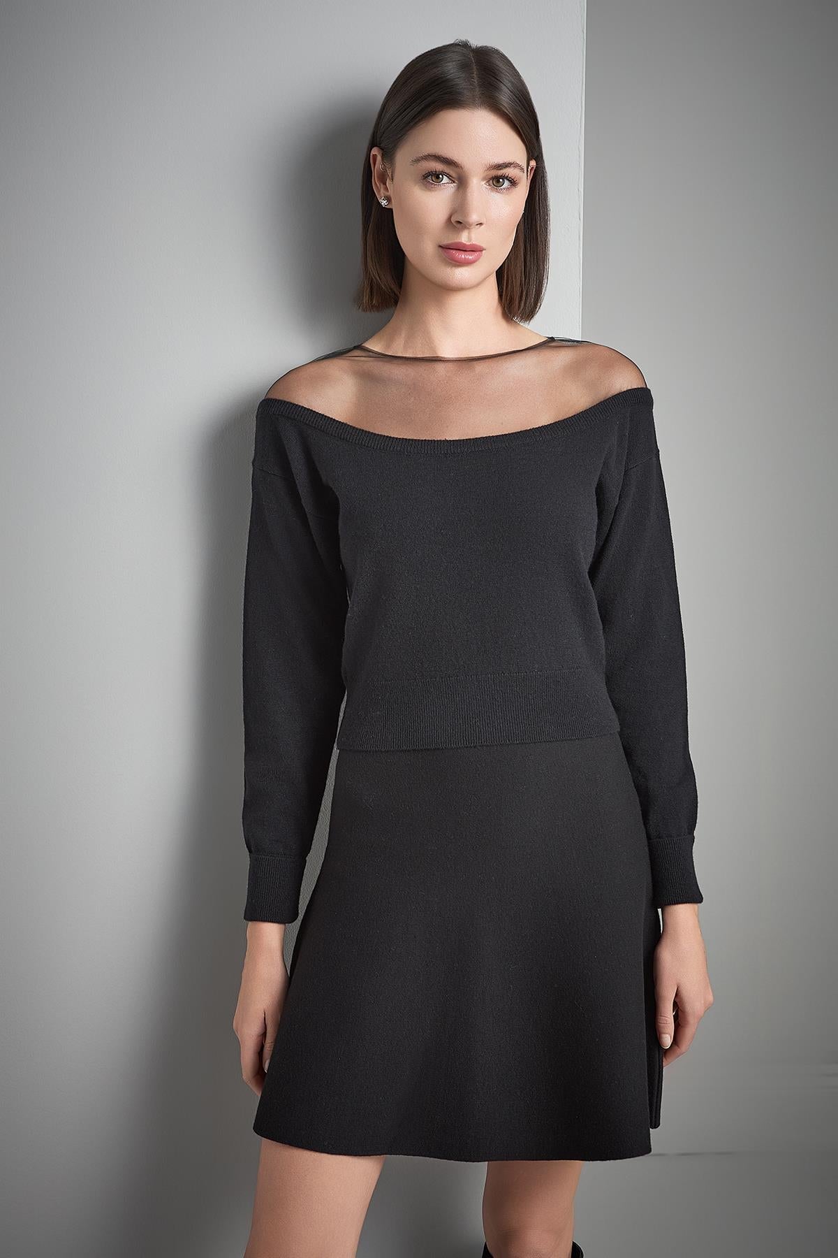 Kloş Mini Siyah Triko Etek