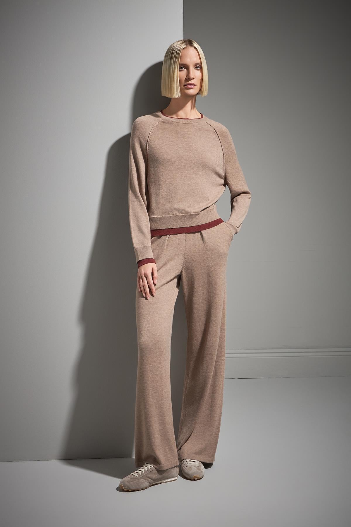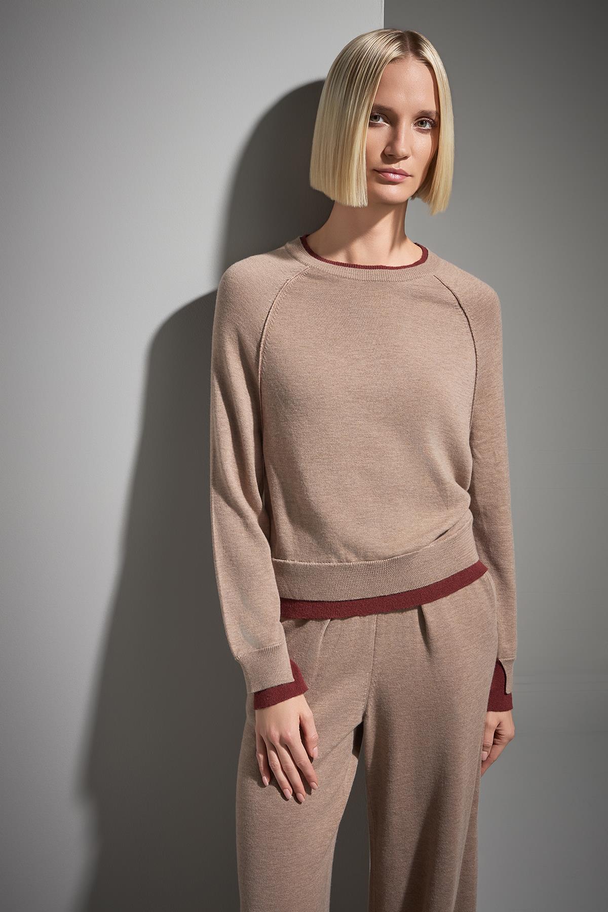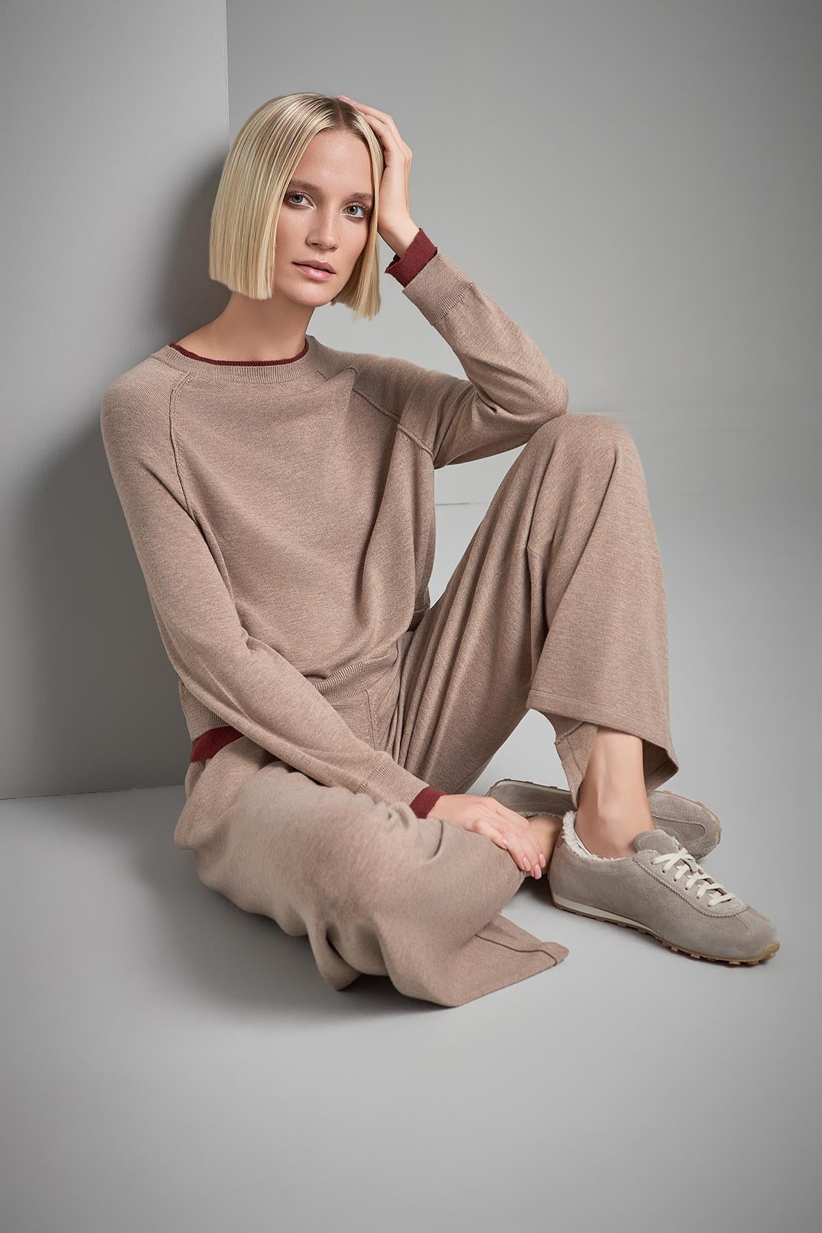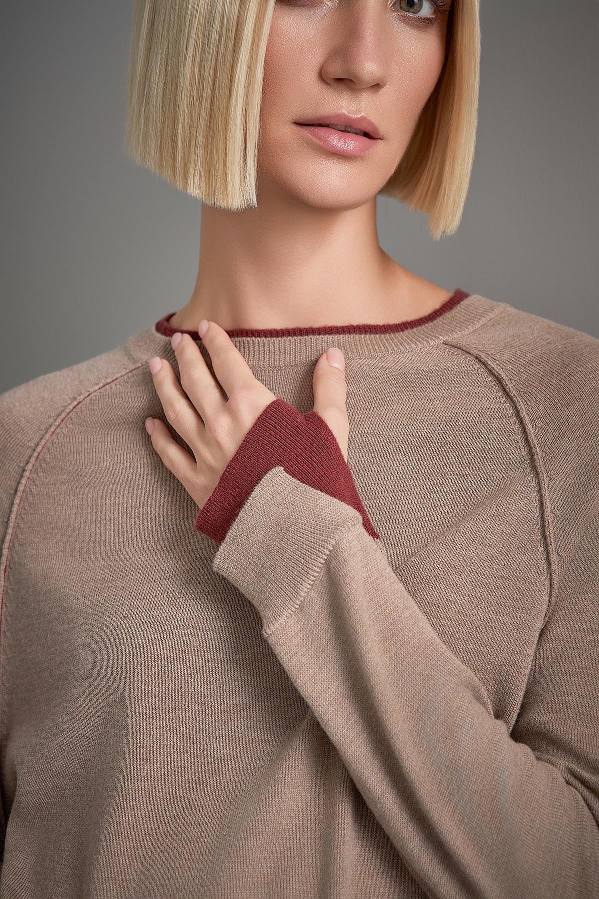 Çift Kat Detaylı Bisiklet Yaka Bej Triko Kazak