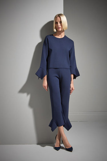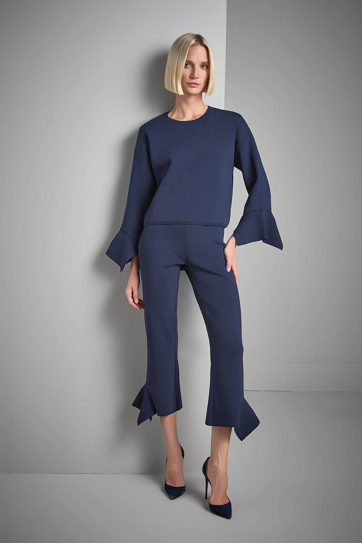 Beli Lastikli Volanlı Lacivert Triko Pantolon