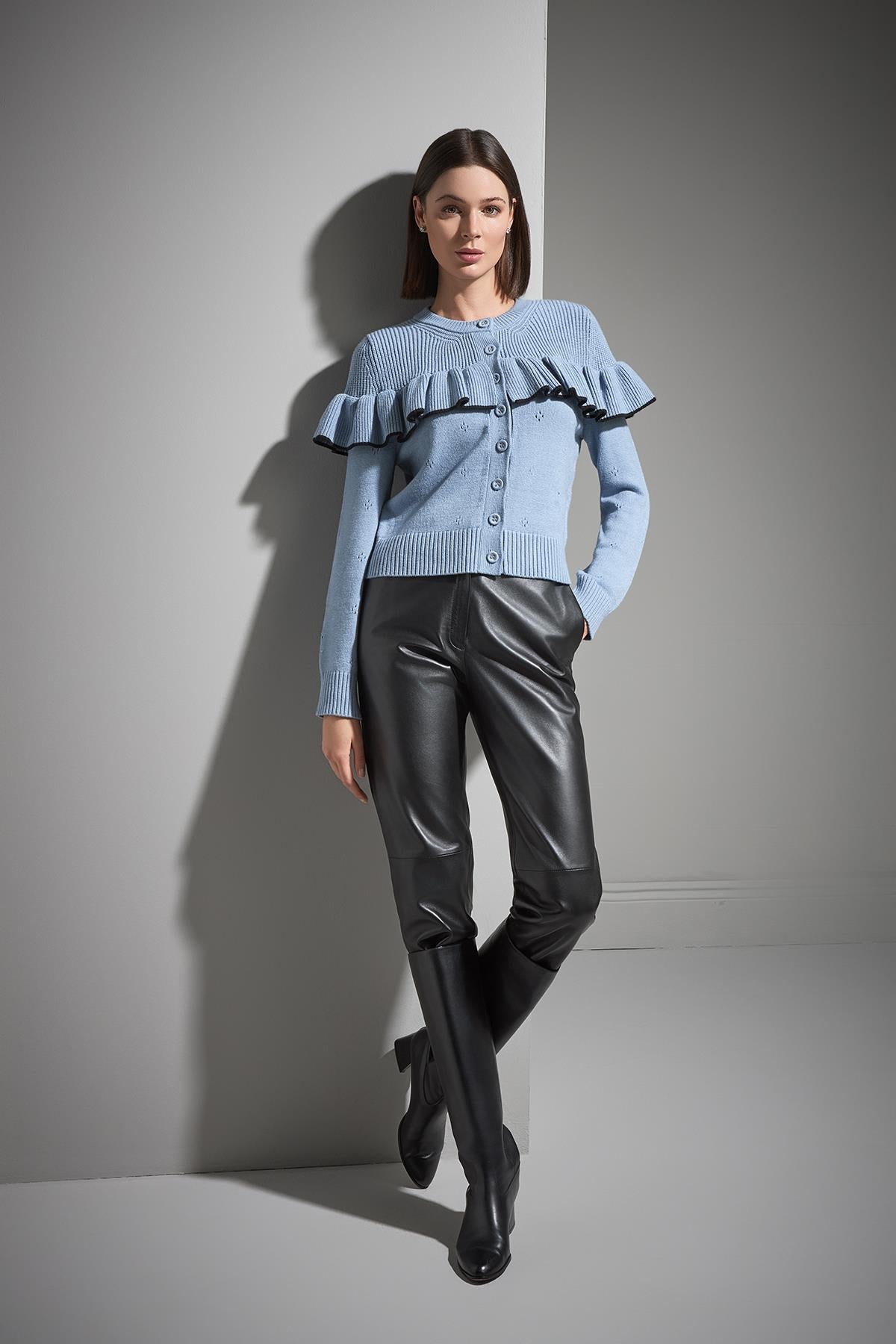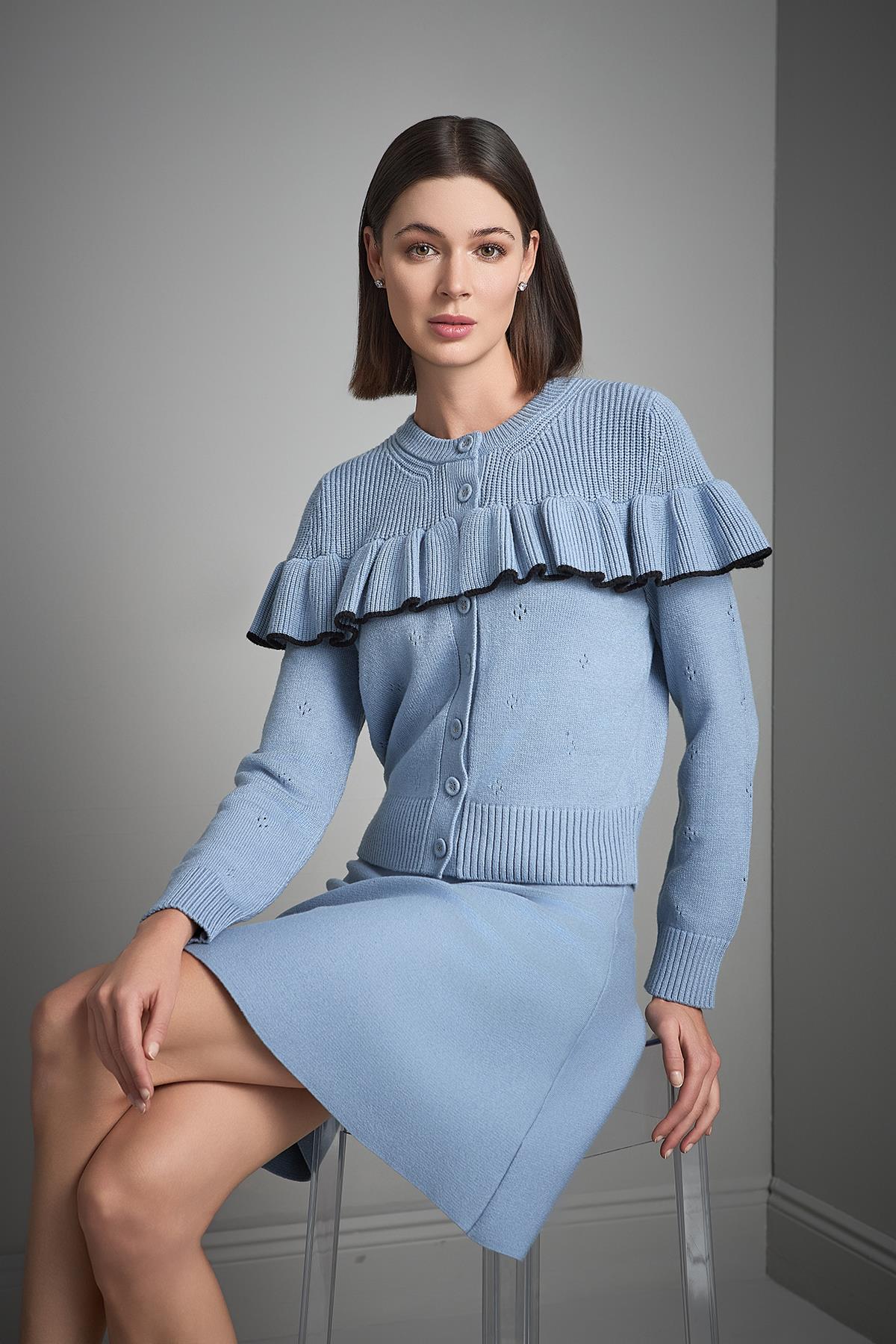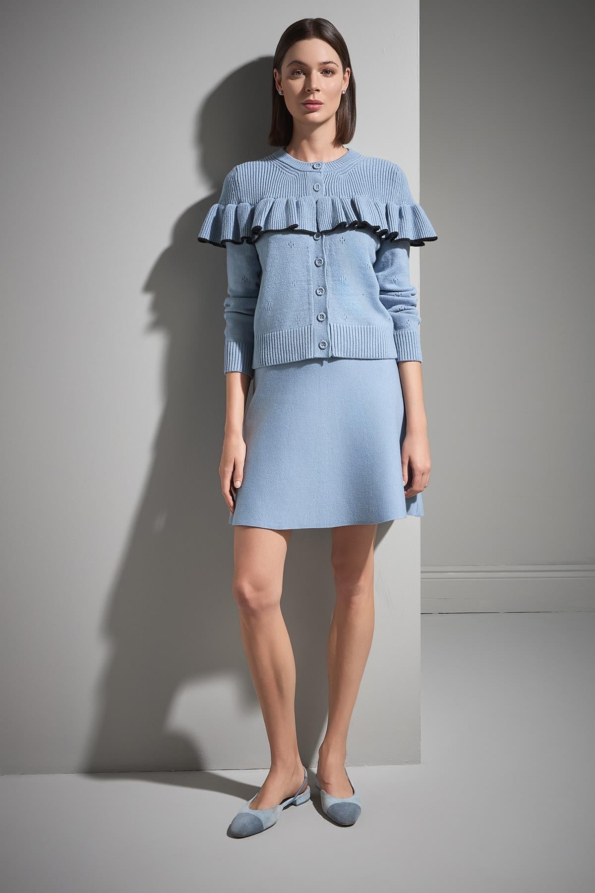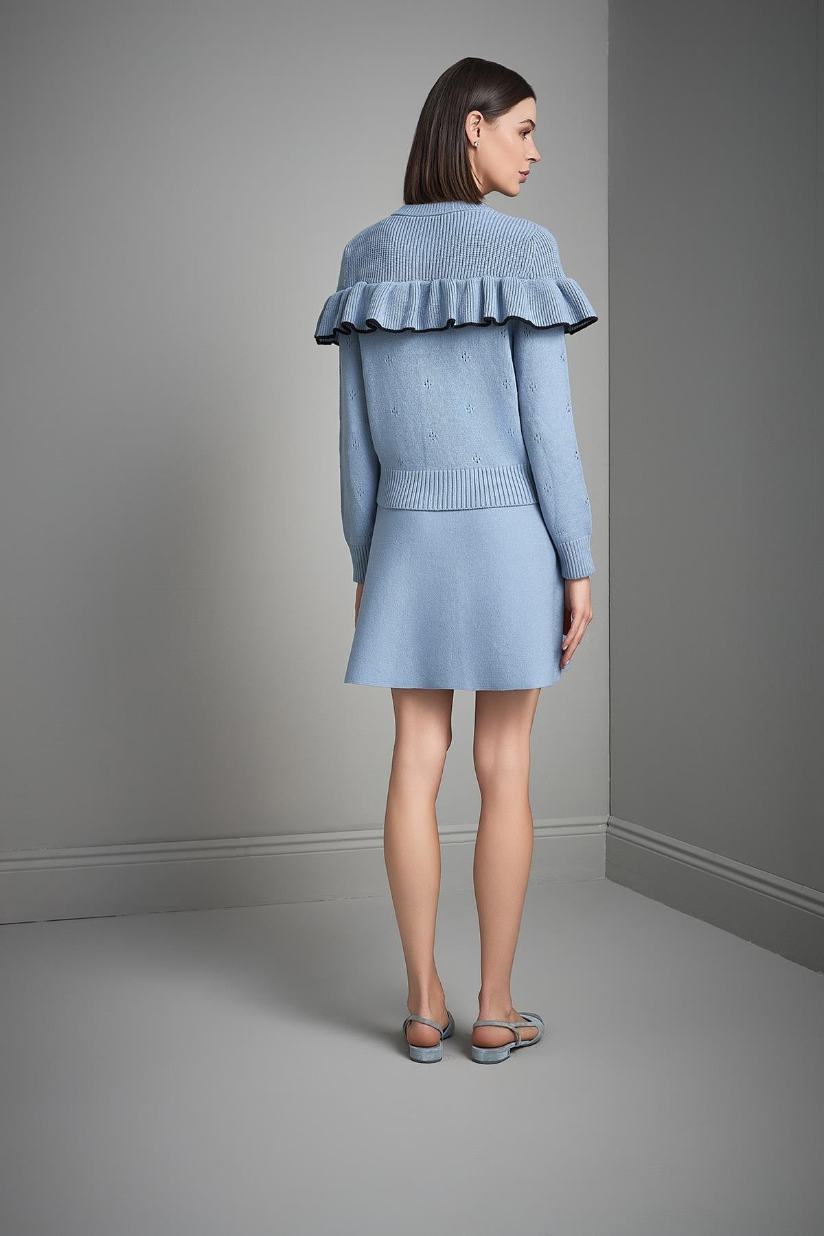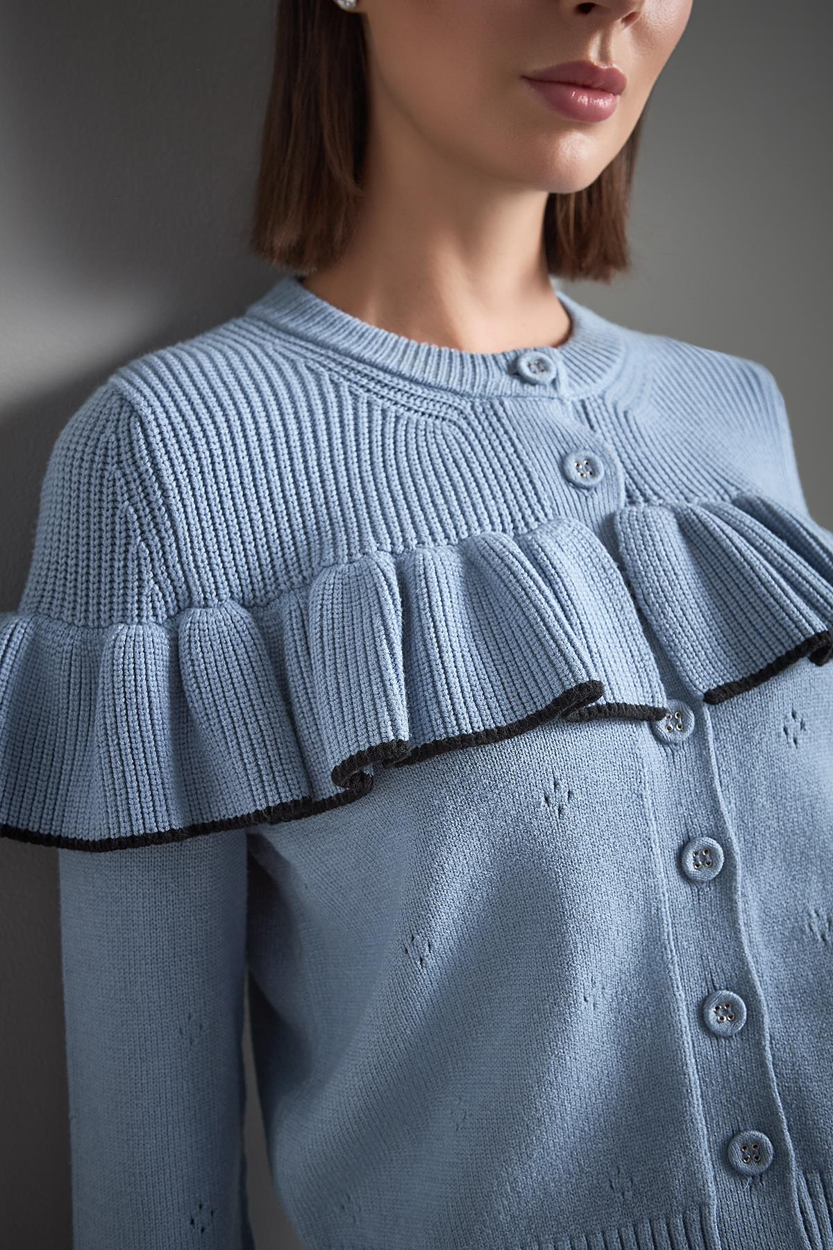 Ajurlu Fırfır Detaylı Mavi Triko Hırka