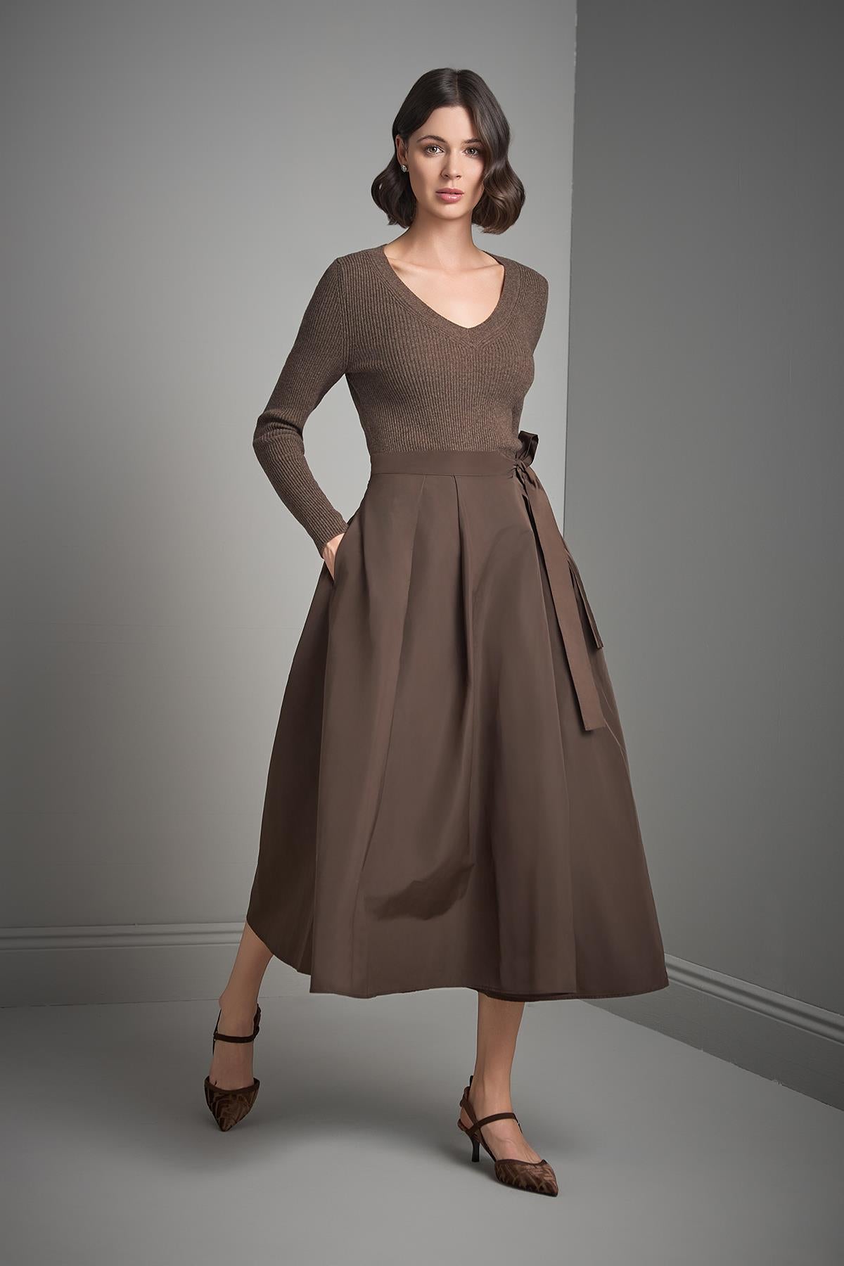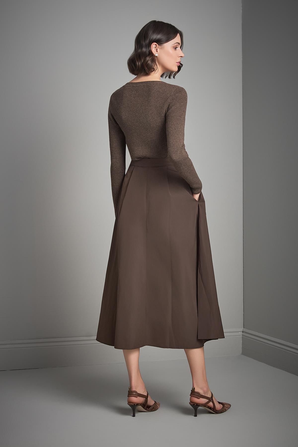 Belden Bağlamalı Kahverengi Anvelop Kumaş Etek