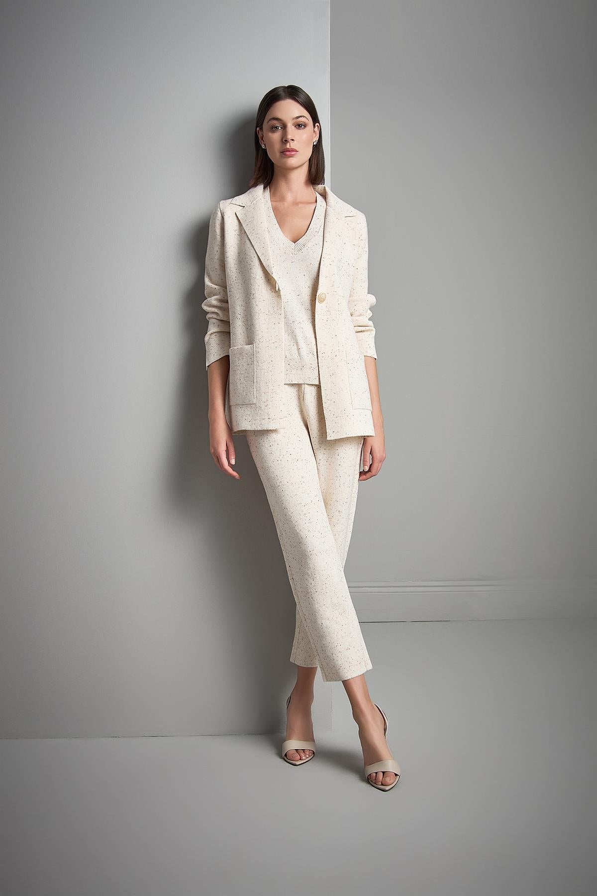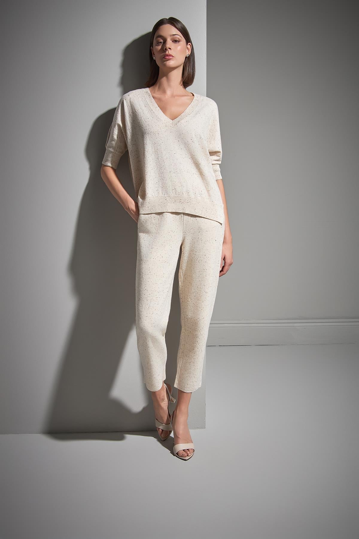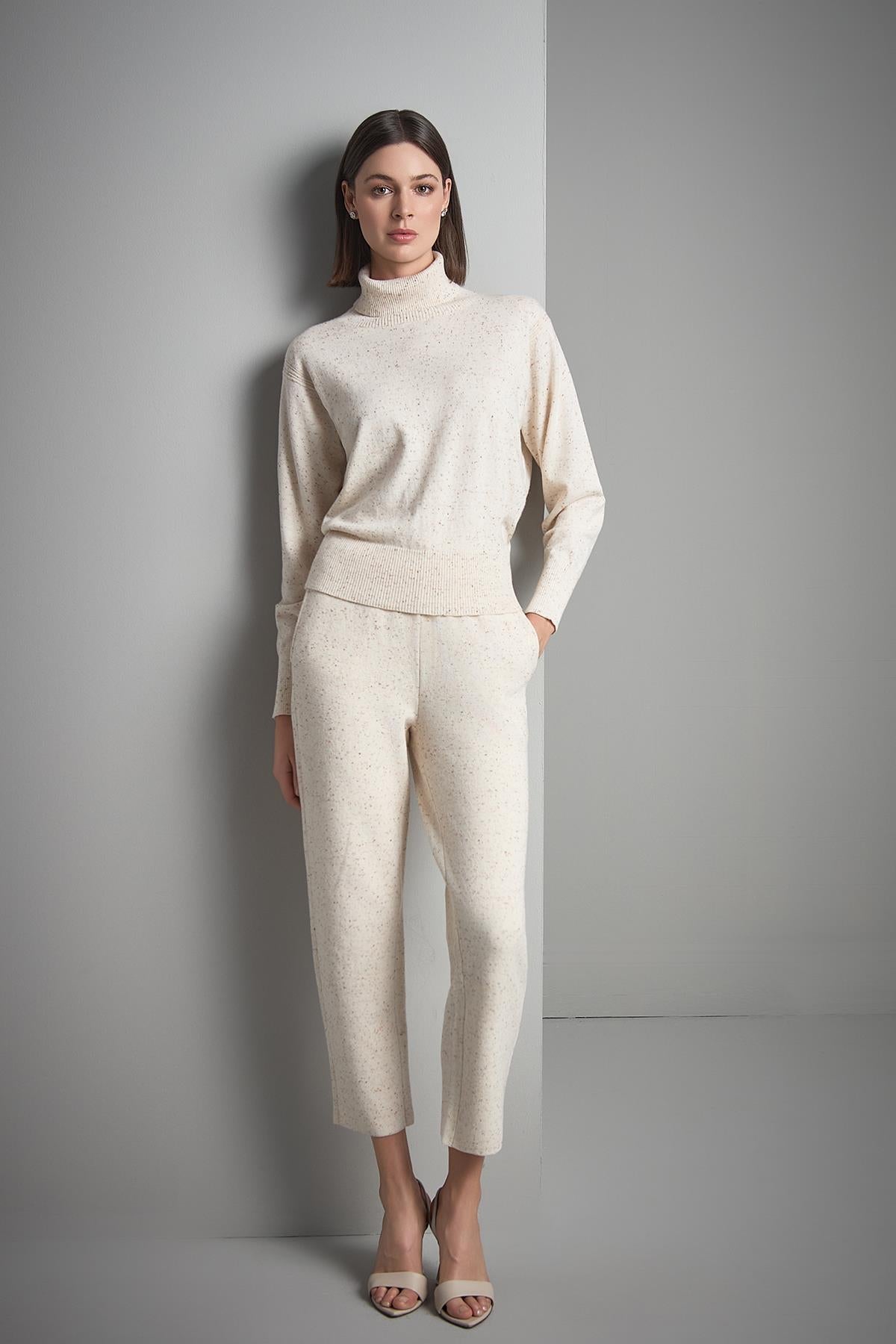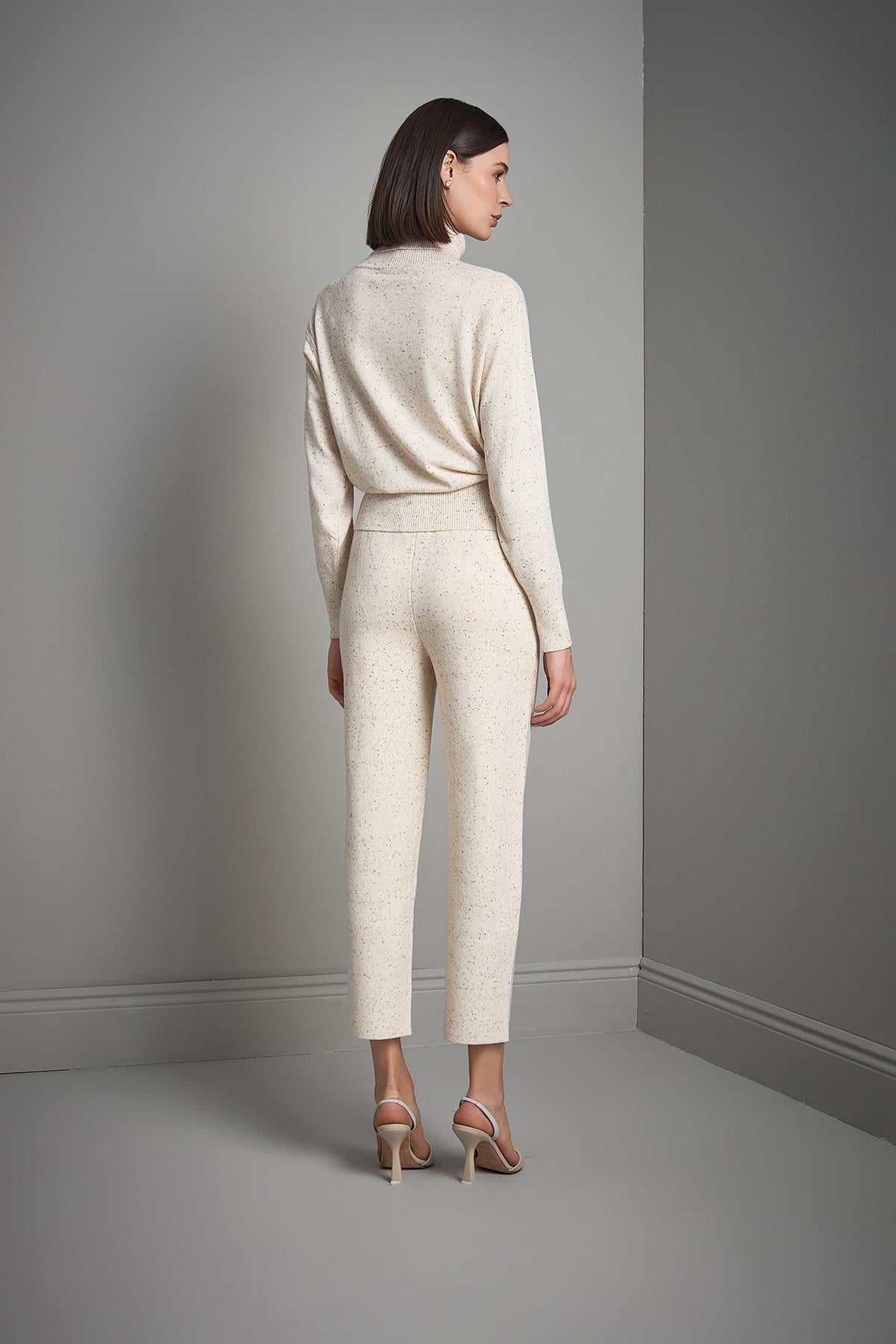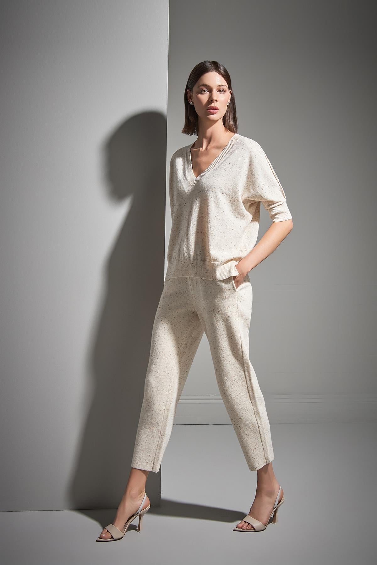 Beli Kordonlu Nopeli Ekru Triko Pantolon
