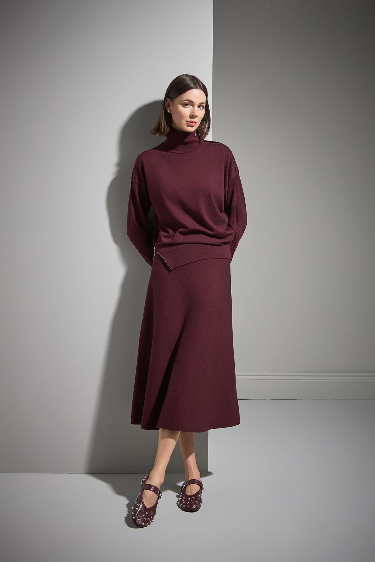 Beli Lastikli Kloş Midi Bordo Triko Etek