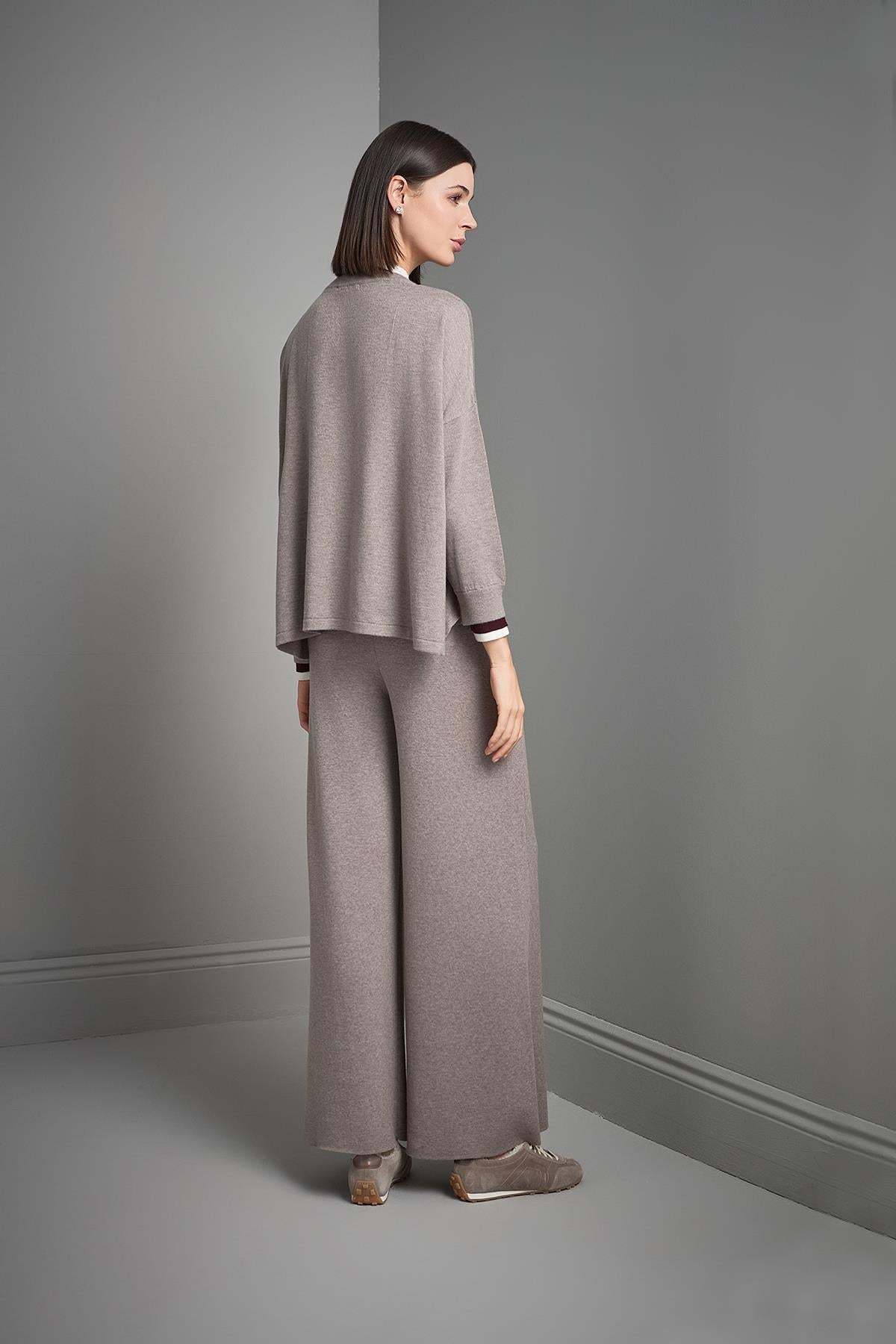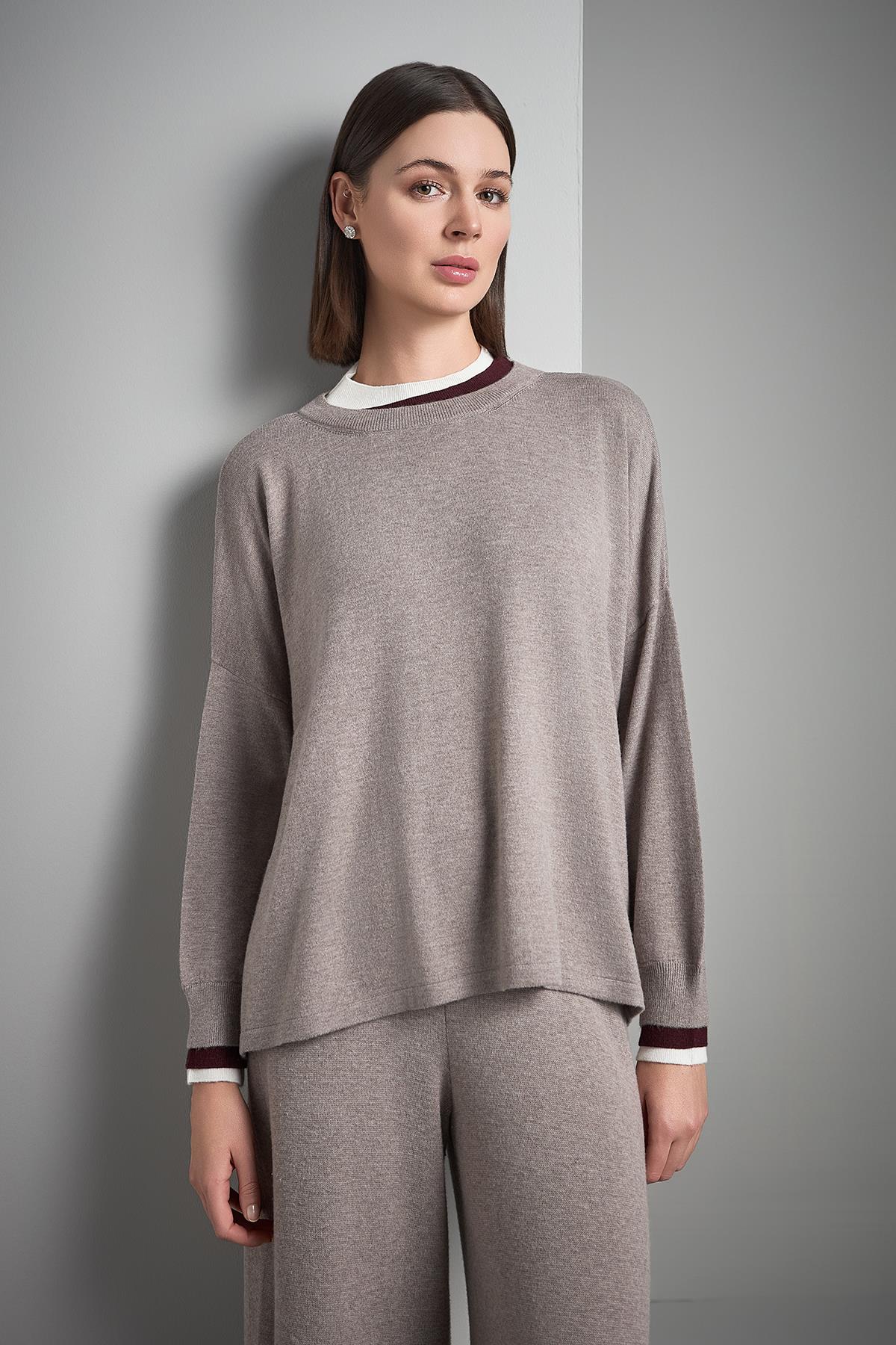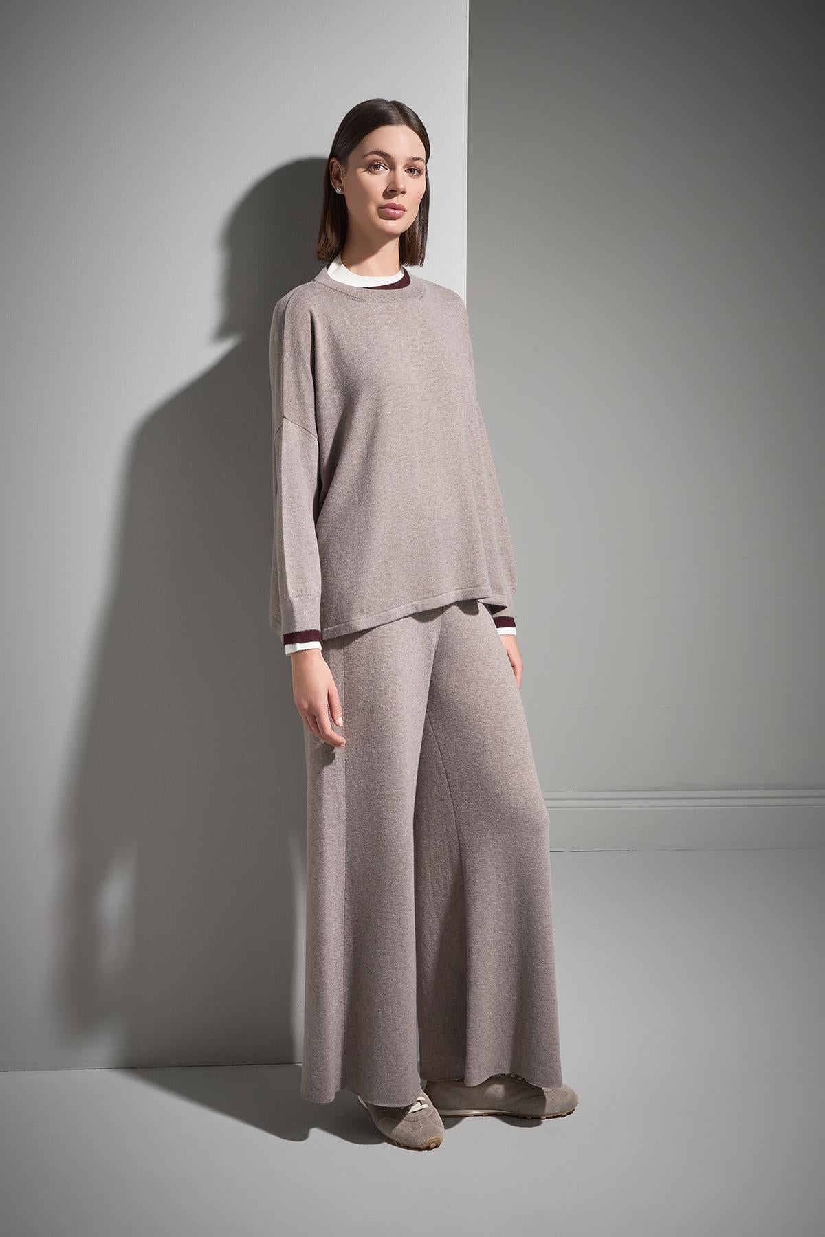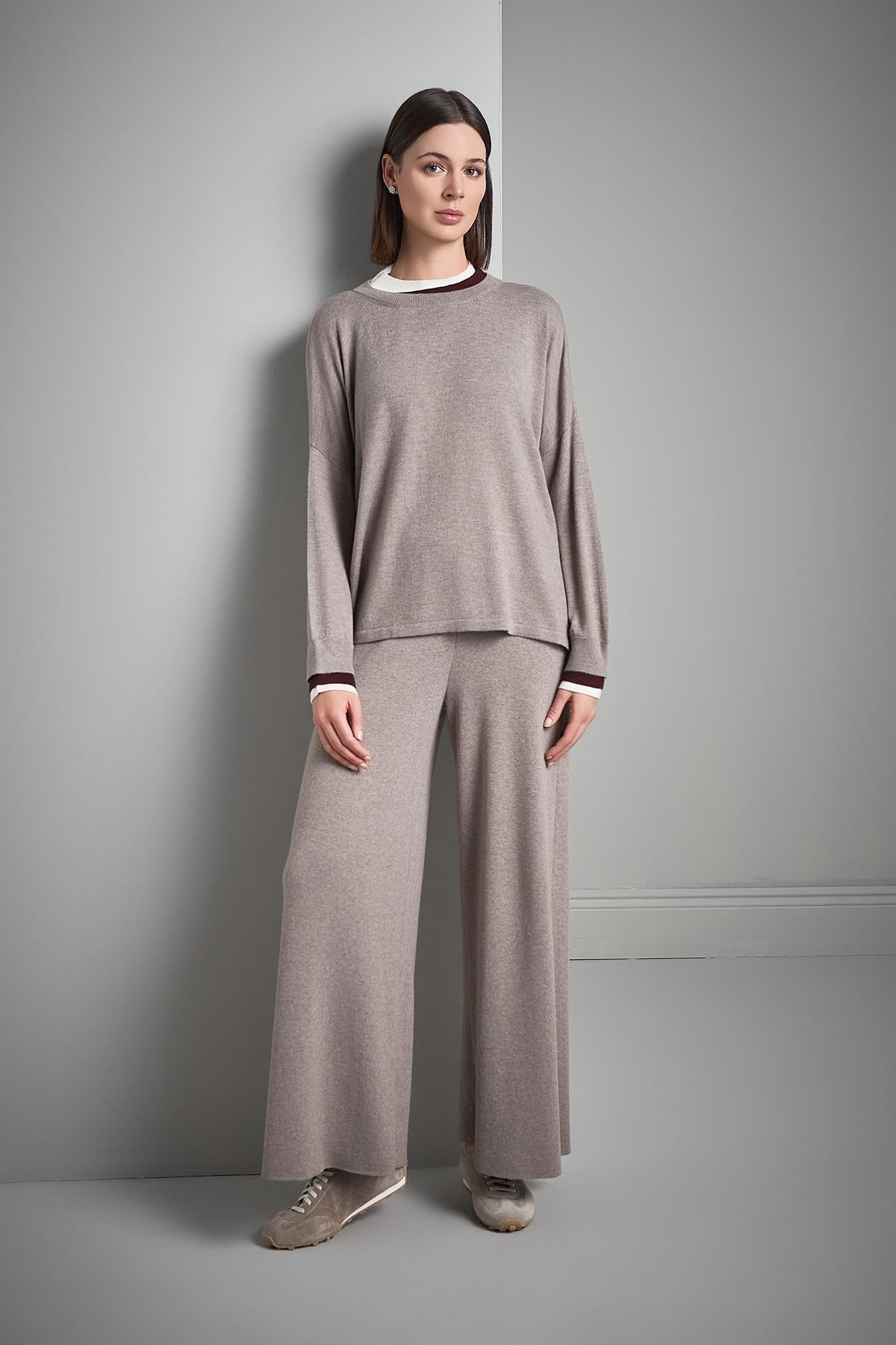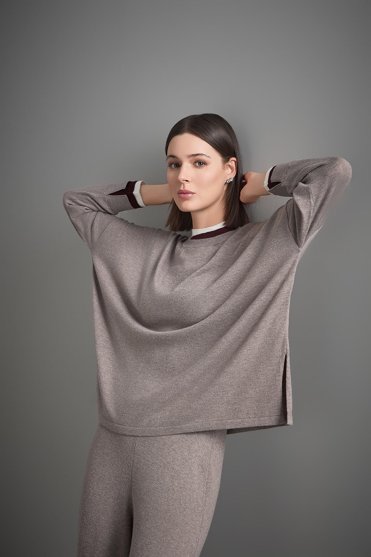 Çift Yaka Ve Manşet Detaylı Vizon Triko Kazak