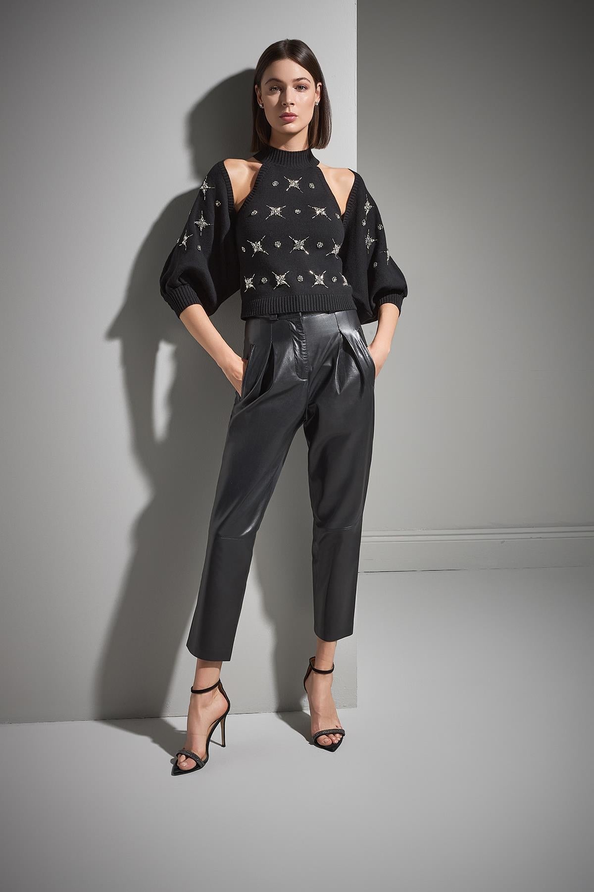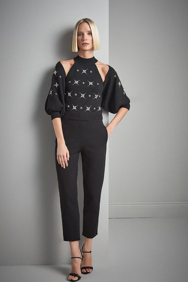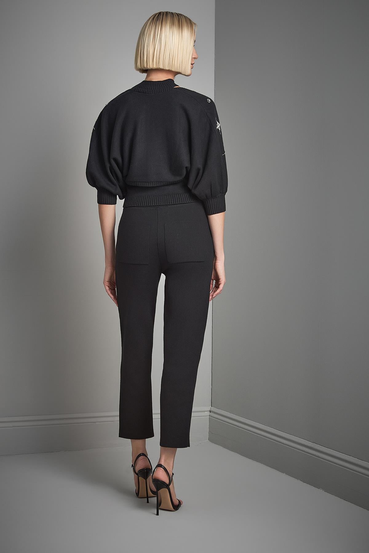 El İşi Taş İşlemeli Siyah Triko Hırka