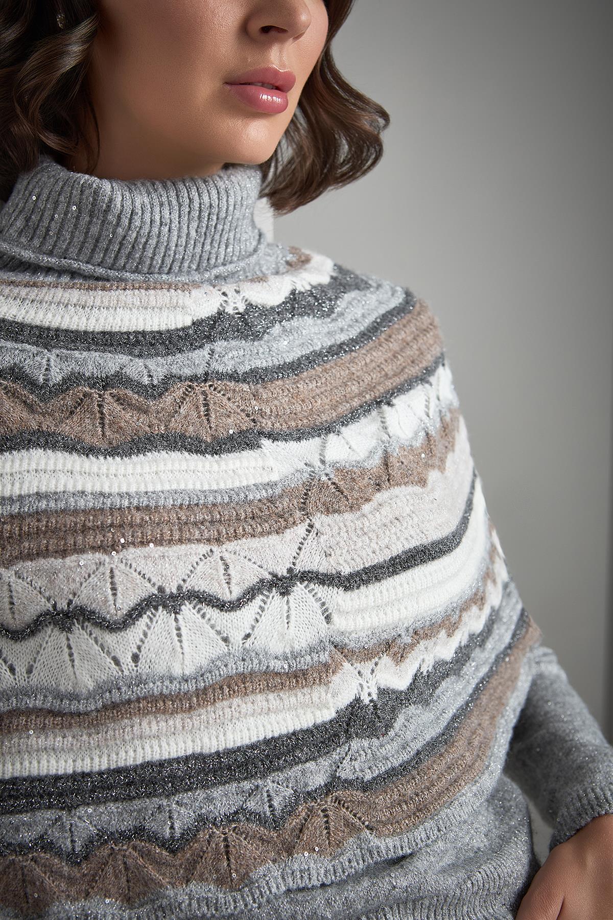 Pul ve Sim Detaylı Ajurlu Multi Triko Panço