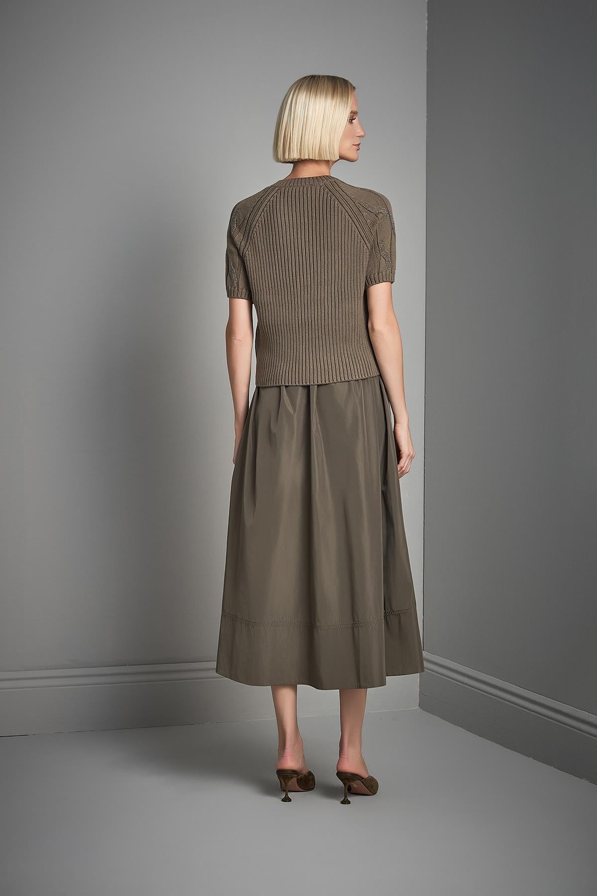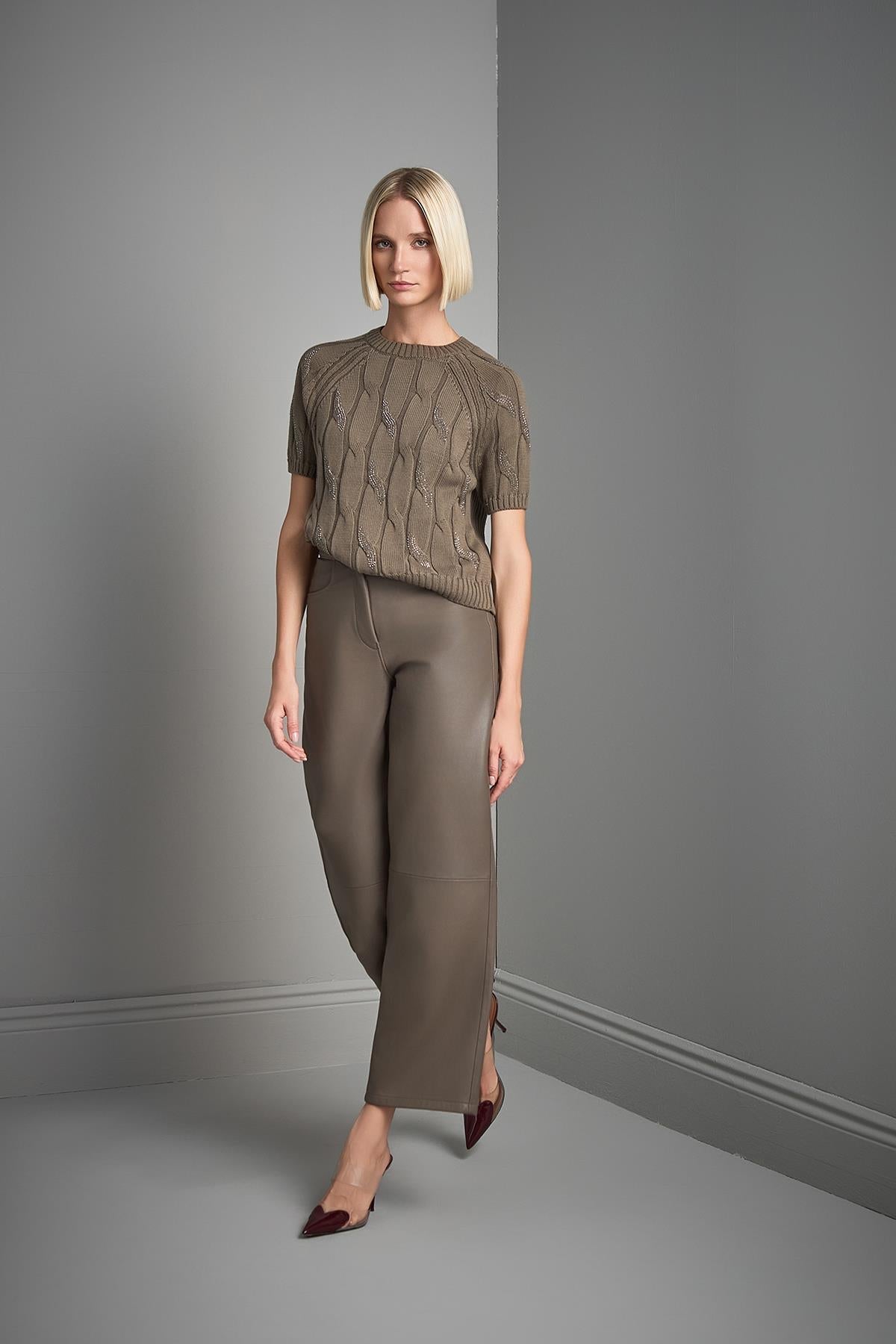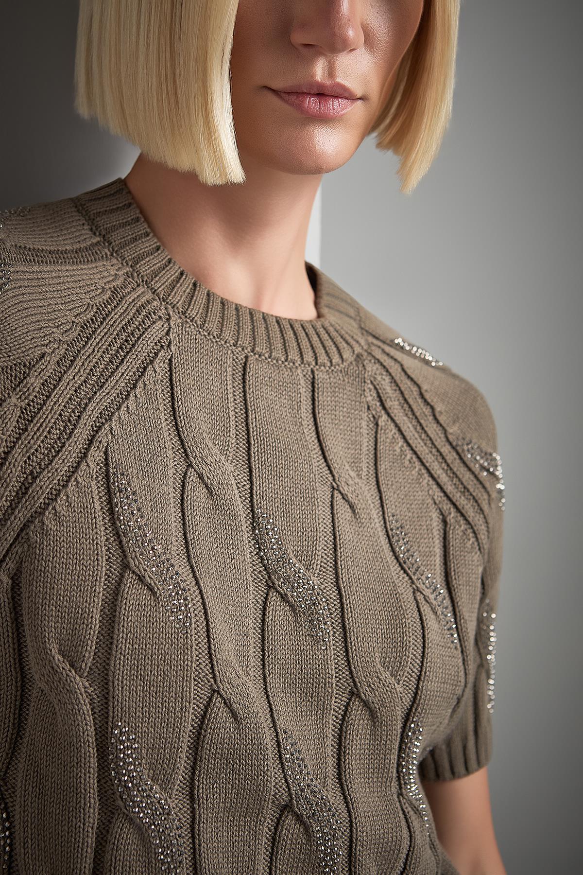 Taş Baskılı Saç Örgülü Yeşil Triko Kazak
