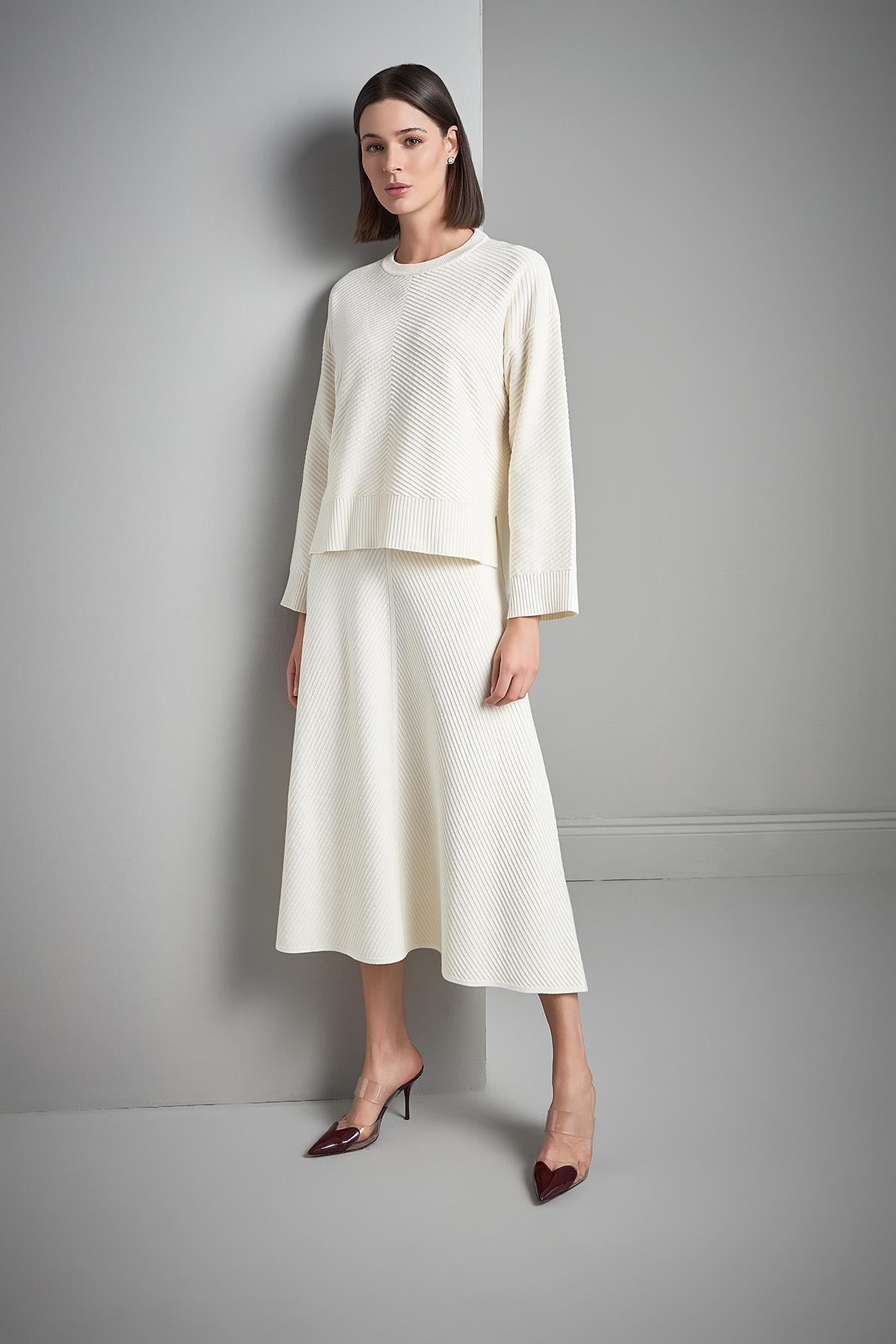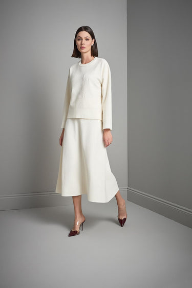 Verev Desenli Kloş Ekru Midi Triko Etek