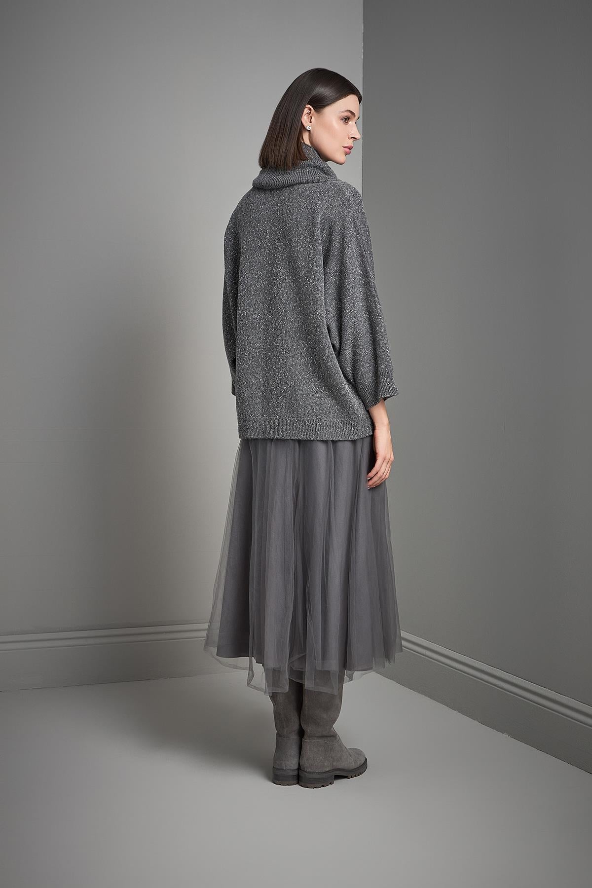 Broş Detaylı Fonksiyonel Yaka Gri Triko Kazak