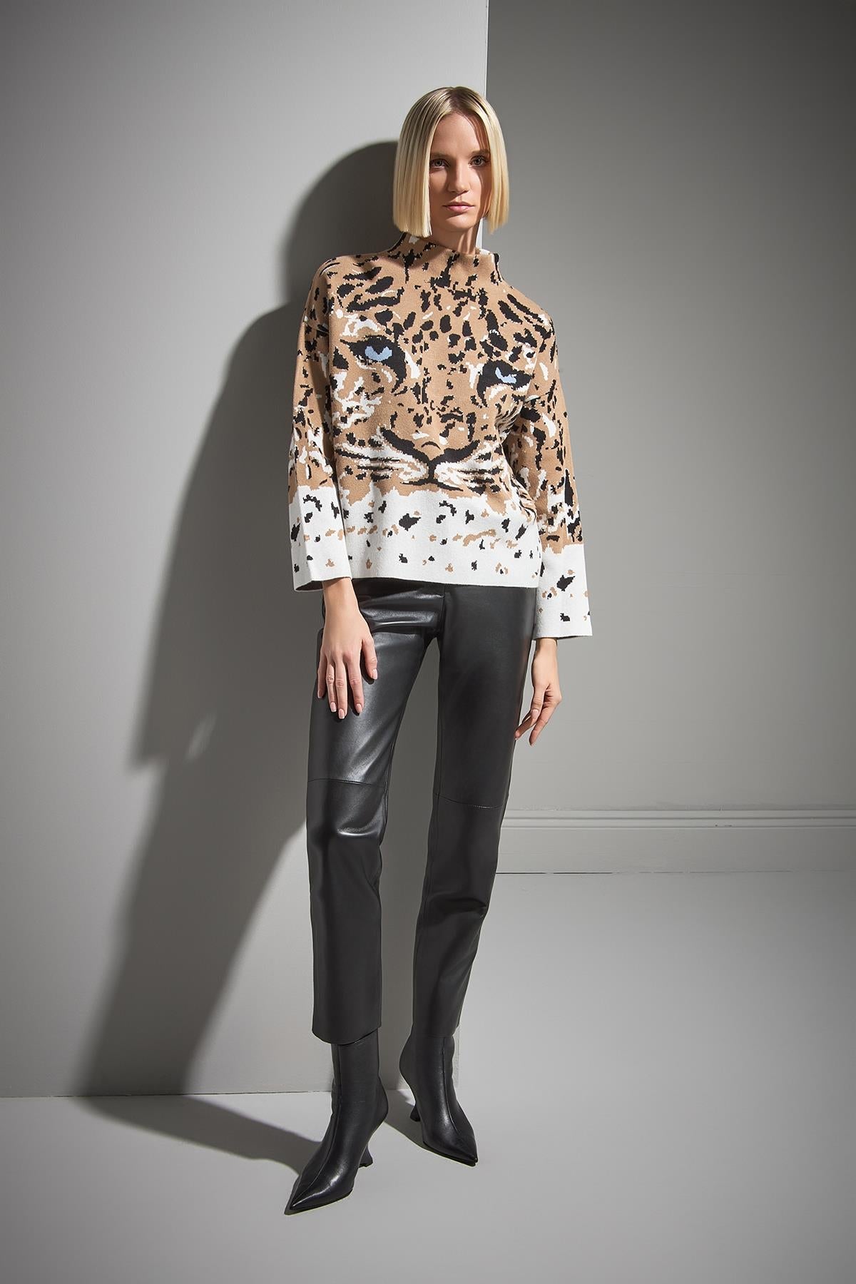 Dik Yaka Aslan Desenli Multi Triko Kazak