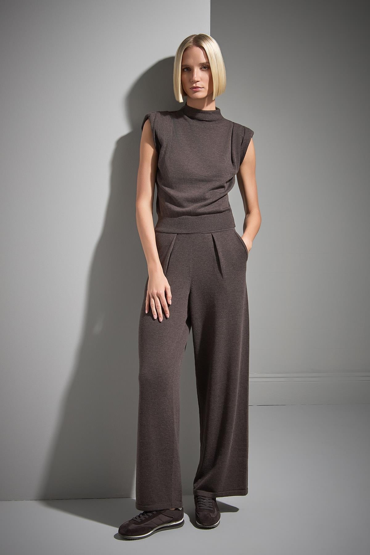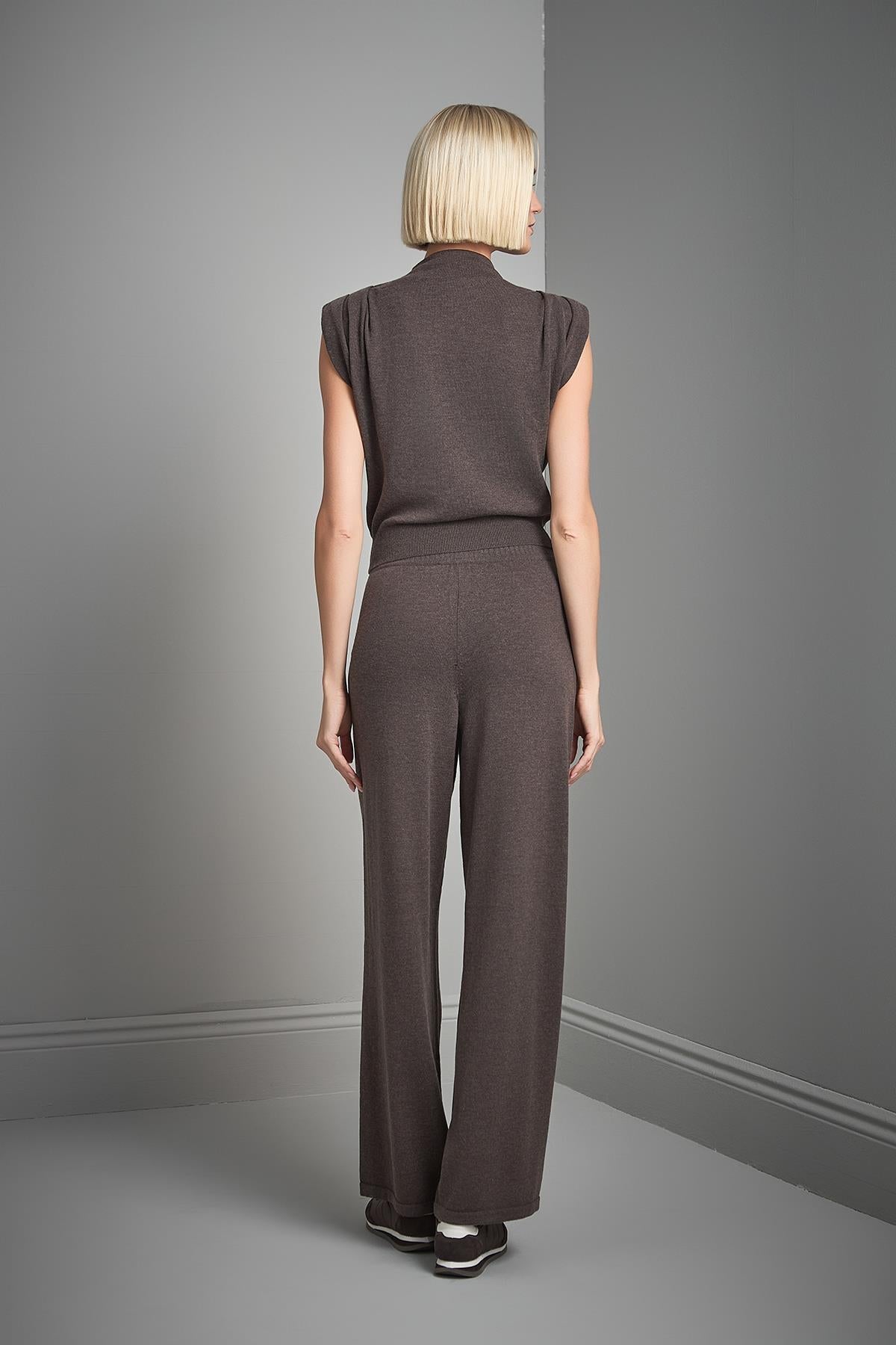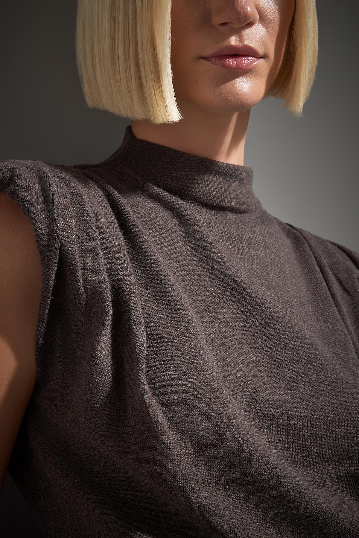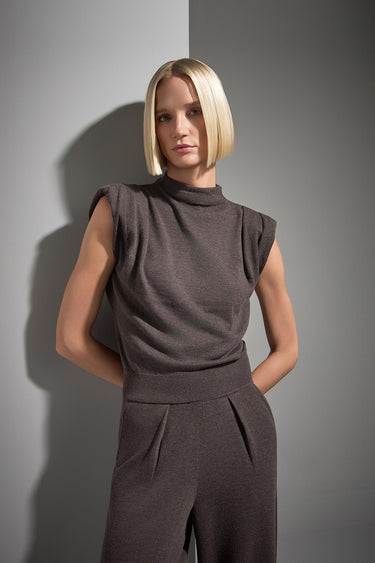 Dik Yaka Vatkalı Kahverengi Triko Bluz