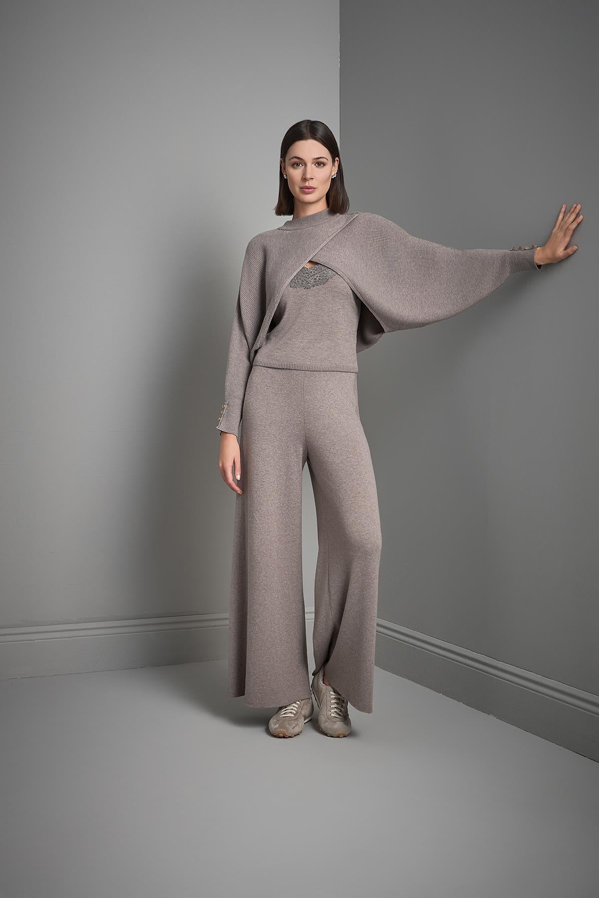 Sırt Dekolteli Düğme Detaylı Vizon Triko Panço