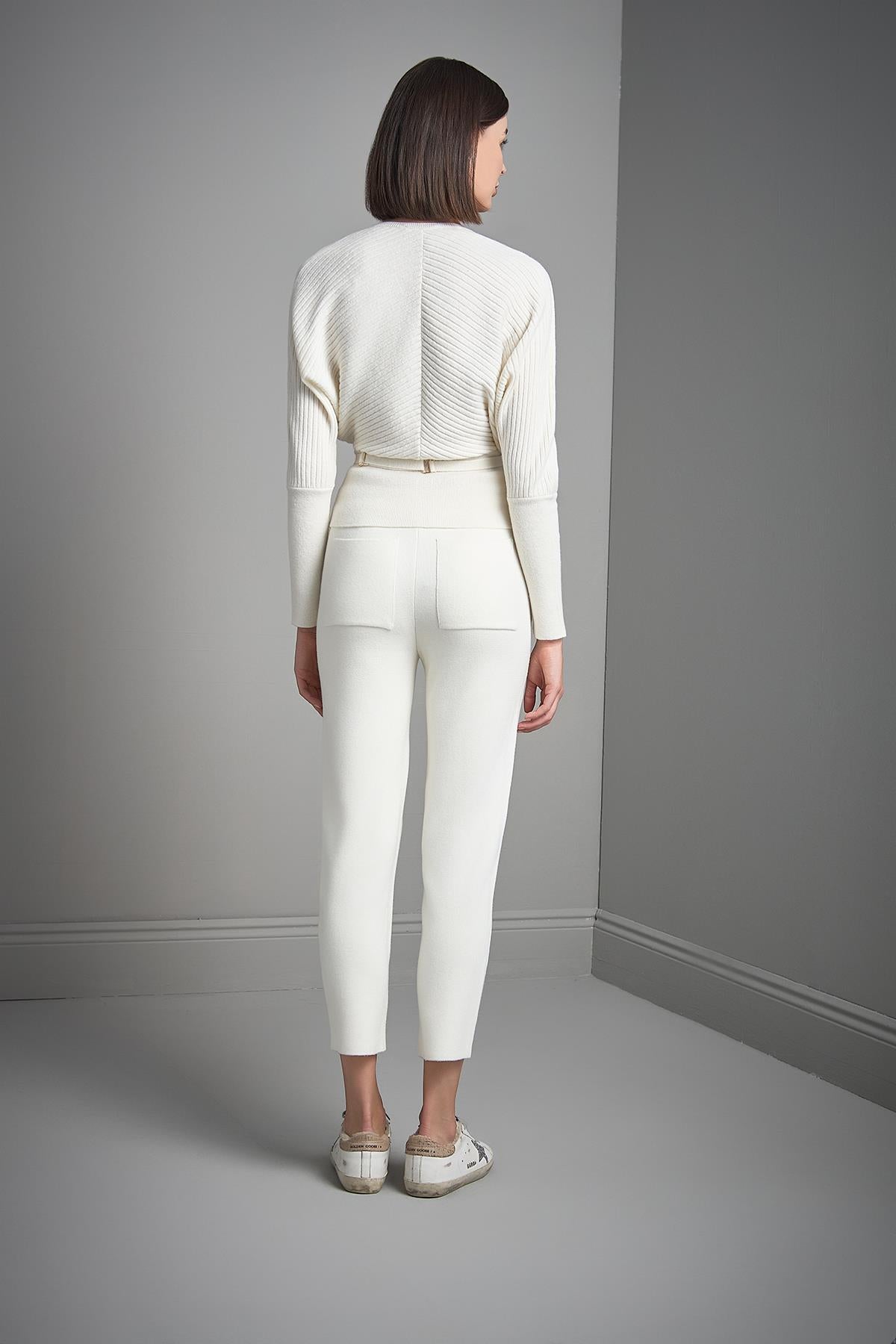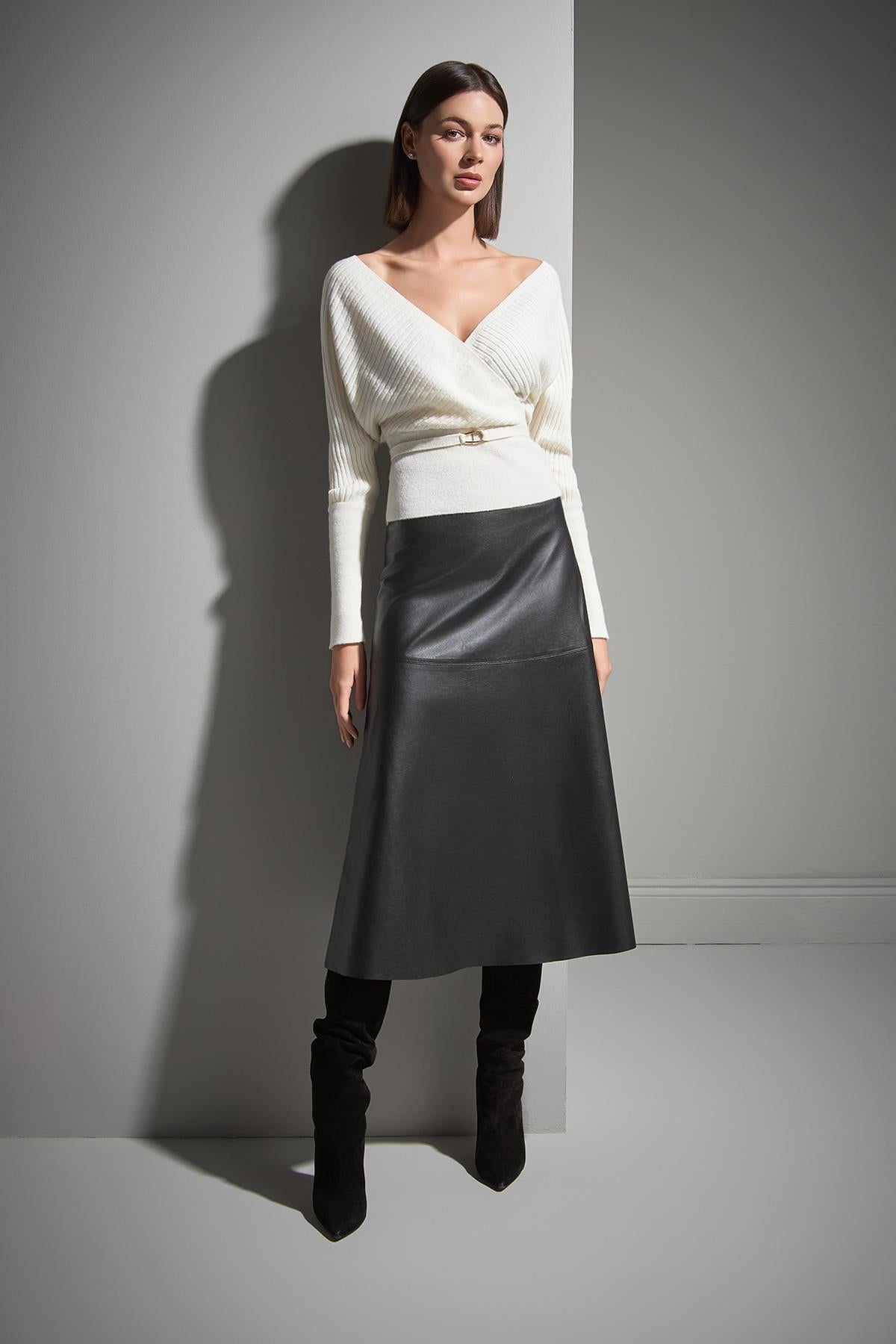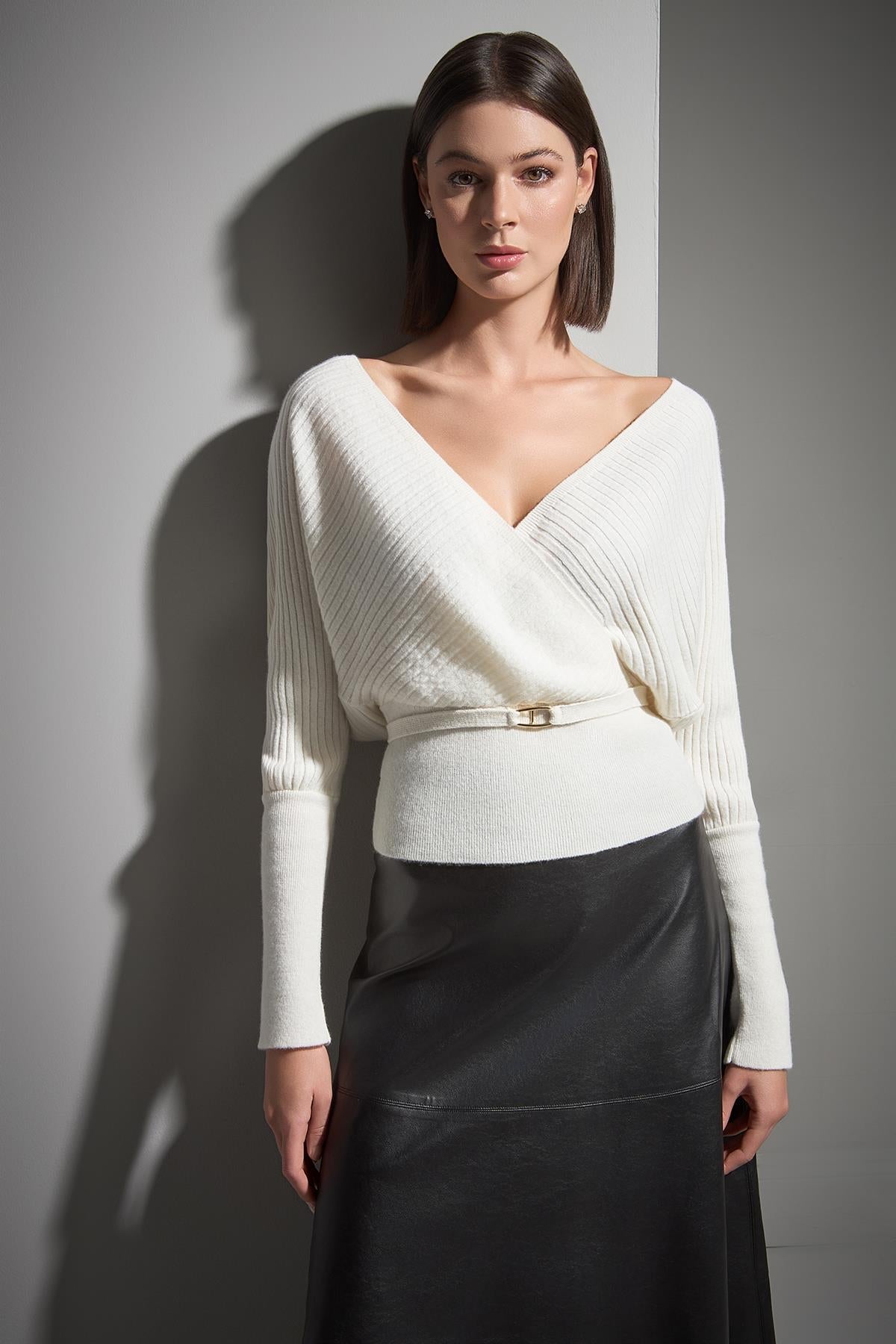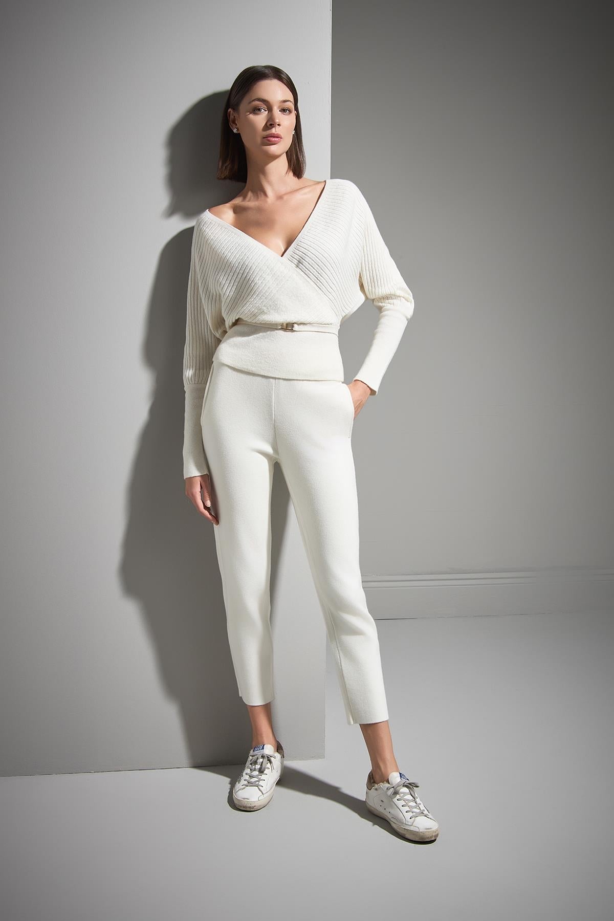 Triko Kemerli Kruvaze Yaka Ekru Triko Kazak