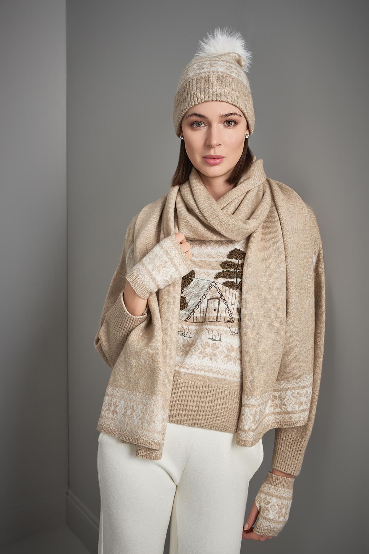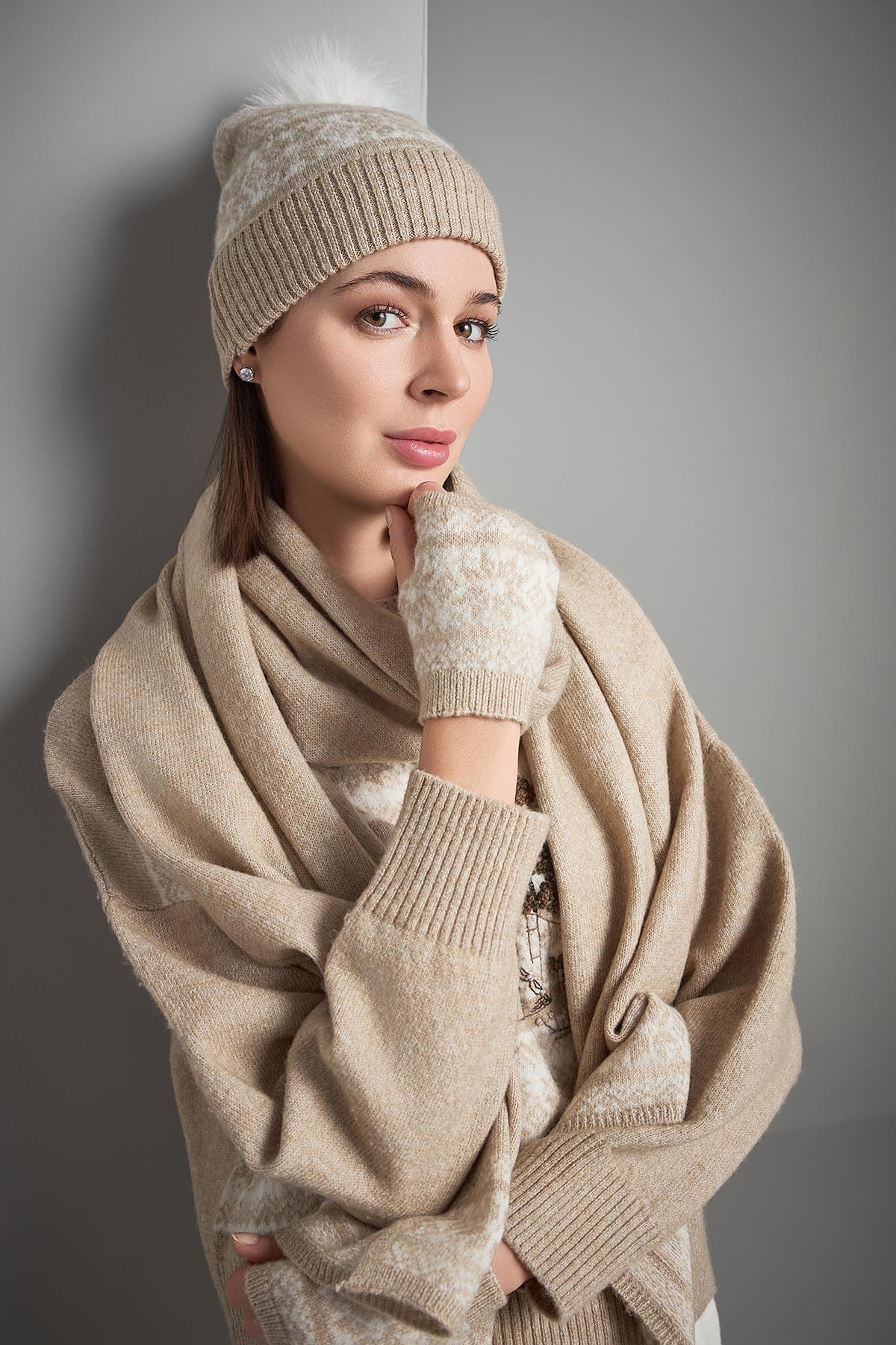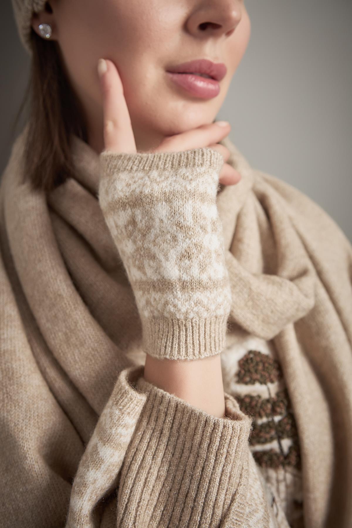 Desenli Bej Trko Eldiven