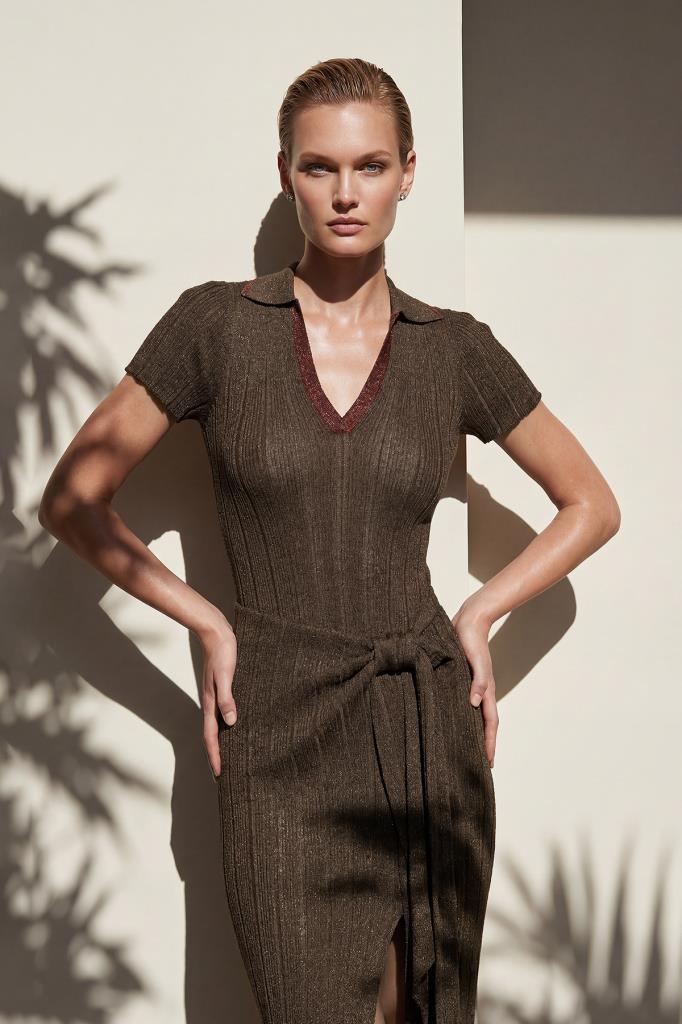 Düğüm Detaylı Anvelop Kahverengi Etek