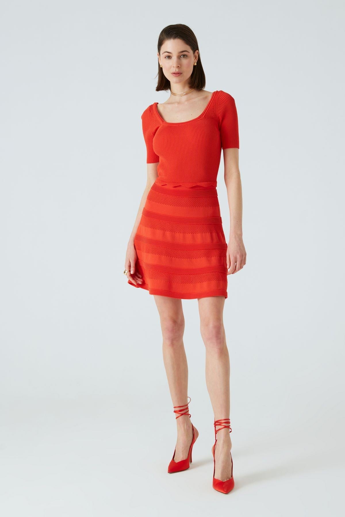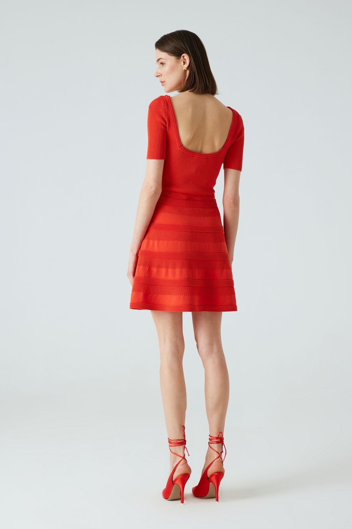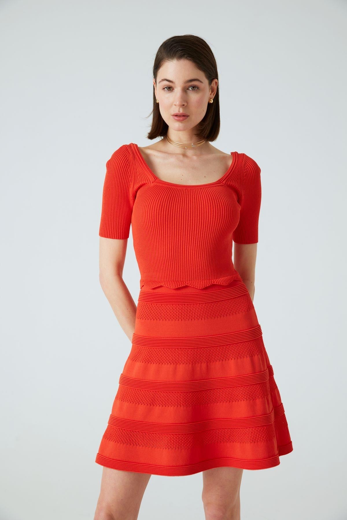 Kare Yaka Volanlı Turuncu Triko Elbise