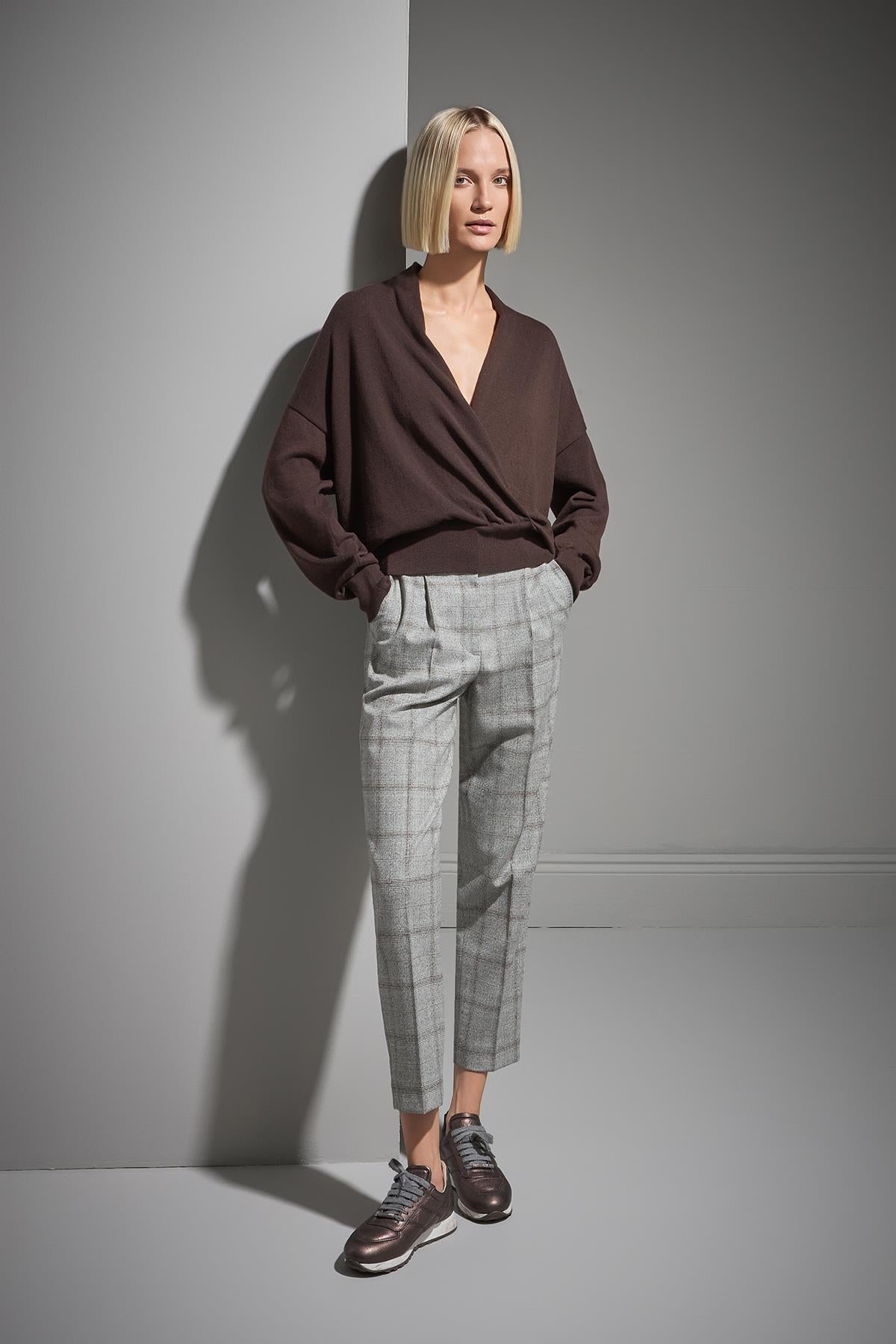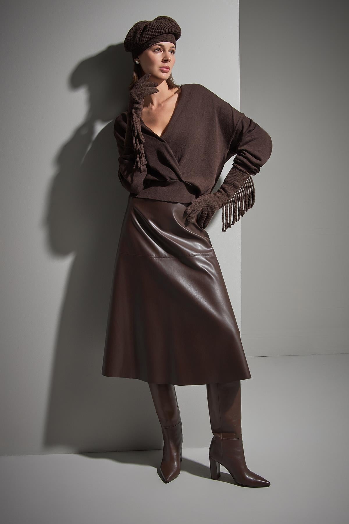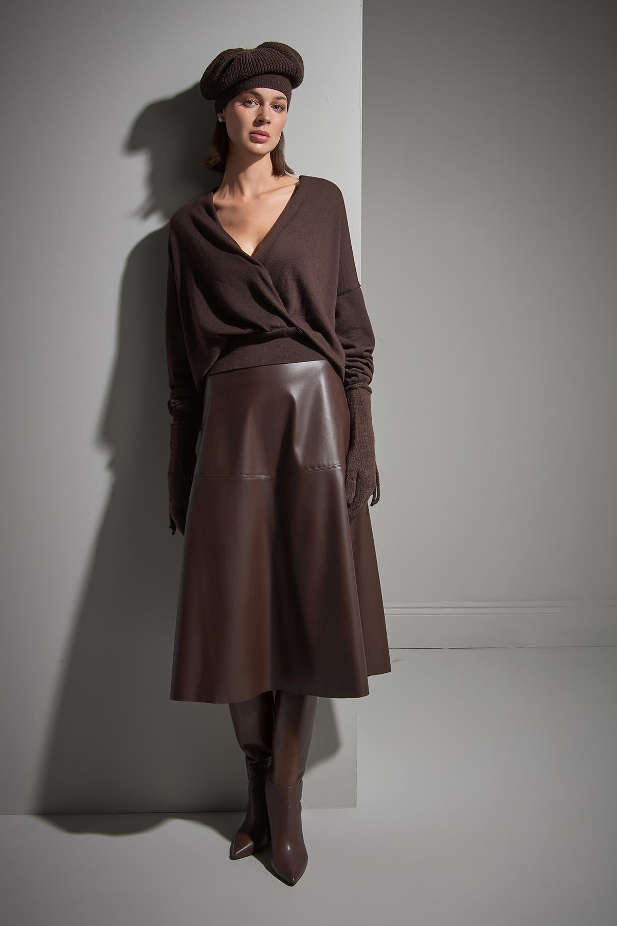 Kruvaze Yaka Kahverengi Triko Kazak