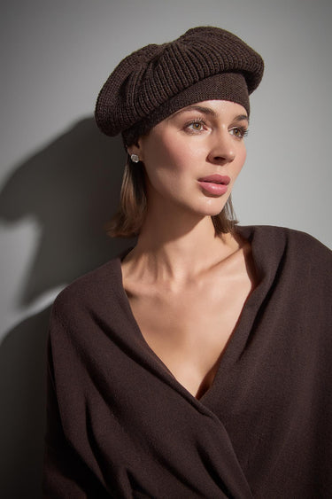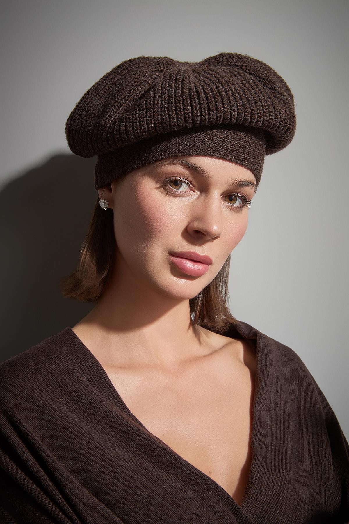 Örgü Detaylı Kahverengi Triko Bere